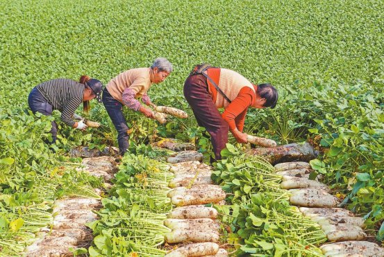 眼下,正是萝卜成熟大量上市的时节。图为1月14日,渭沱镇七星村小群蔬菜合作社的萝卜丰收现场。据了解,该合作社本季种植的白萝卜是秋宝长萝卜,共200多亩,预计总产值50多万元。