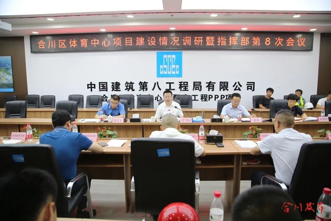 随后,在区体育中心项目部会议室,姜雪松主持召开指挥部第8次会议。他强调,要突出精准,全面把握时间节点进度,加强统筹协调和精准调度,严格按照时间表、任务图,争分夺秒,打表推进,确保各项指令要求全面落地落实。要突出精细,树牢系统思维,做好系统管理,进一步把工作细化量化,细之又细抓好项目施工、安全生产、防暑降温等每一项工作,全力做到万无一失、周密细致。要突出精致,深度融入数字重庆建设,积极构建体育场馆智慧化运营管理平台,提升智慧服务水平;做好创意谋划,科学布局功能,注重内外协调,全方位展现“重庆特色、合川韵味”,把体育中心建成合川的新地标。要突出经典,广泛借鉴和吸取国内大型综合体育赛事的成功经验和做法,精心做好赛事组织、宣传推介、后勤保障、安全保卫等筹备工作,把市七运会办成一届经典的体育盛会。