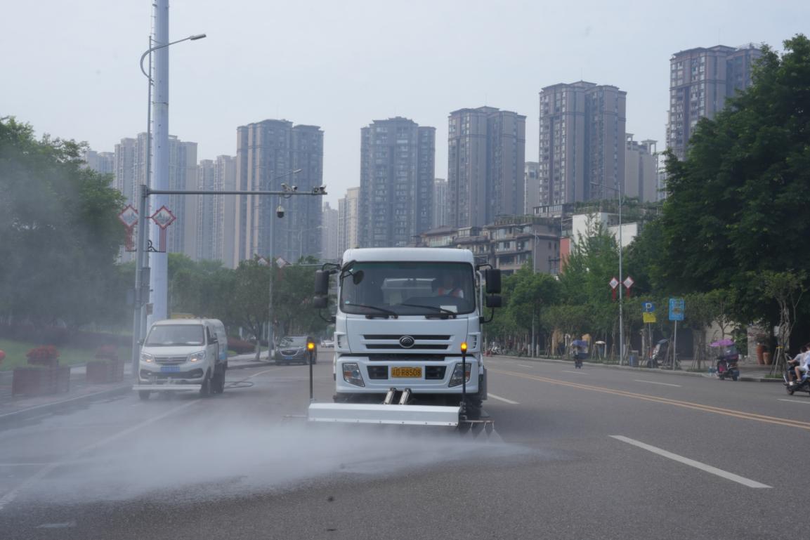 2精细洗尘,全面抑尘。对城区内桥隧护栏、路灯杆、乔灌木枝叶等易积尘设施与绿化进行全覆盖、高频次的专业冲洗与擦拭,着力控制尘源,减少因尘土风化造成的扬尘污染,达到有效抑尘的效果。