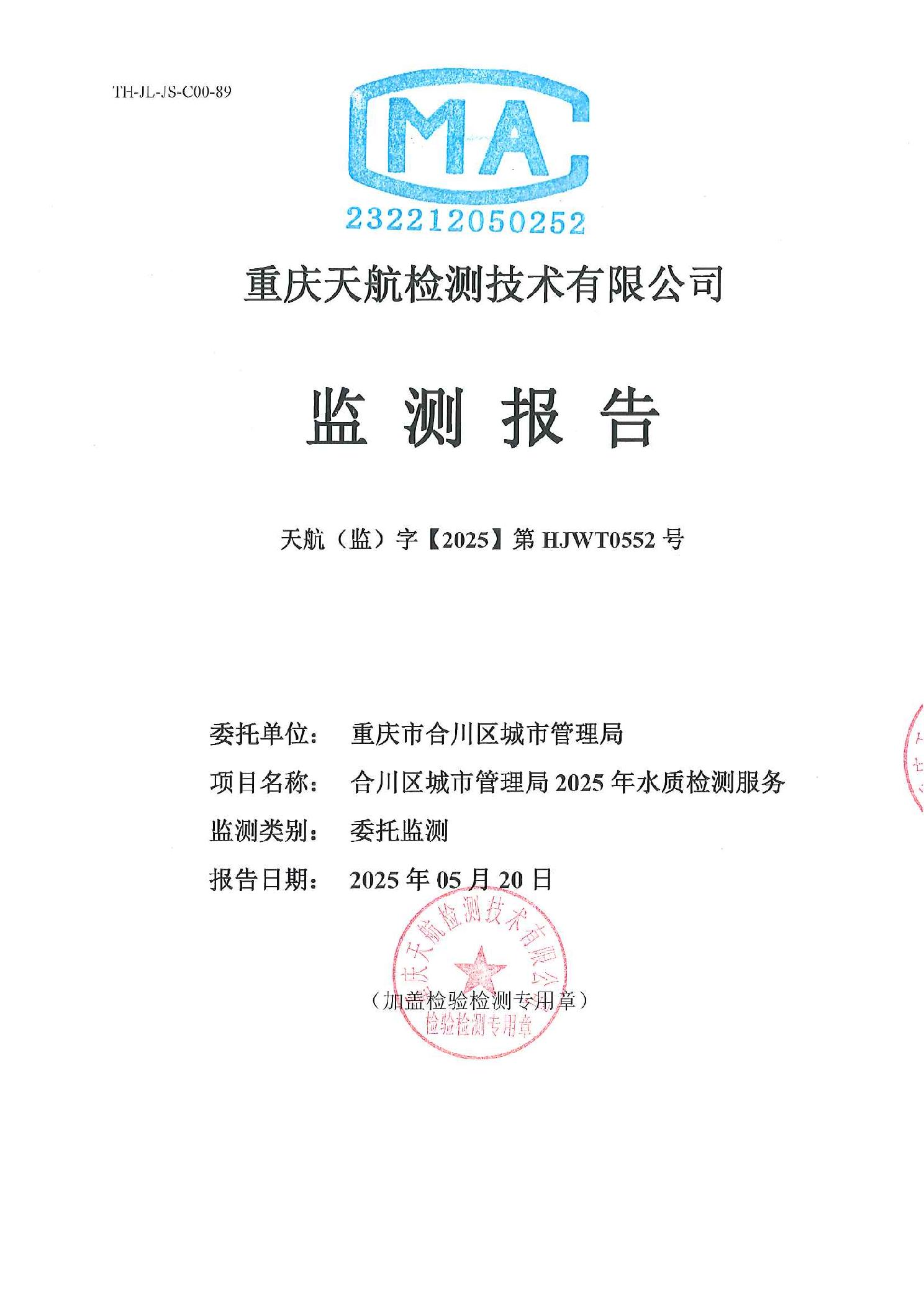 | [标 题] | 合川城区2025年4月水质监测报告 | ||
