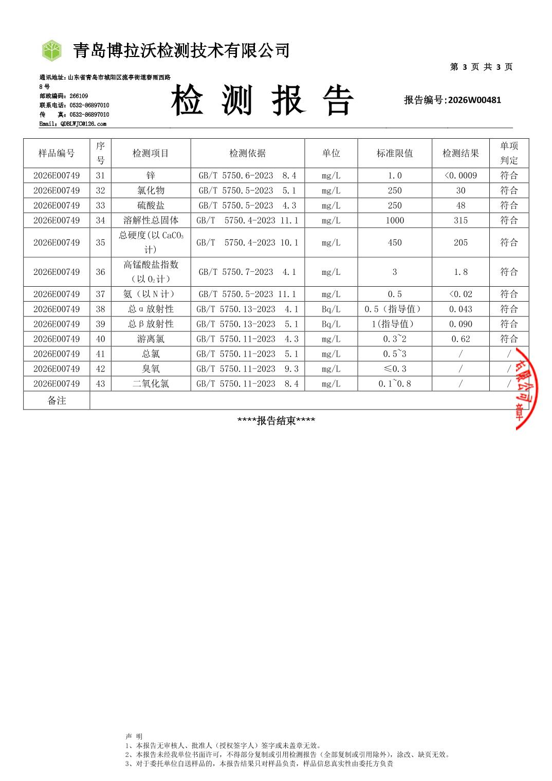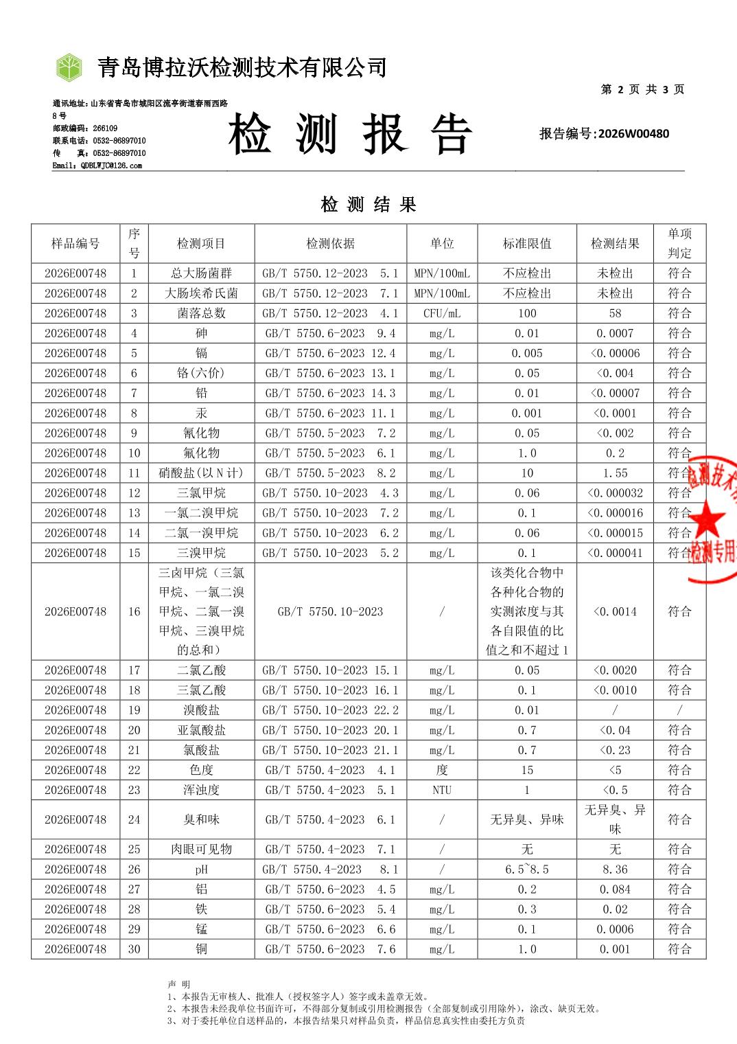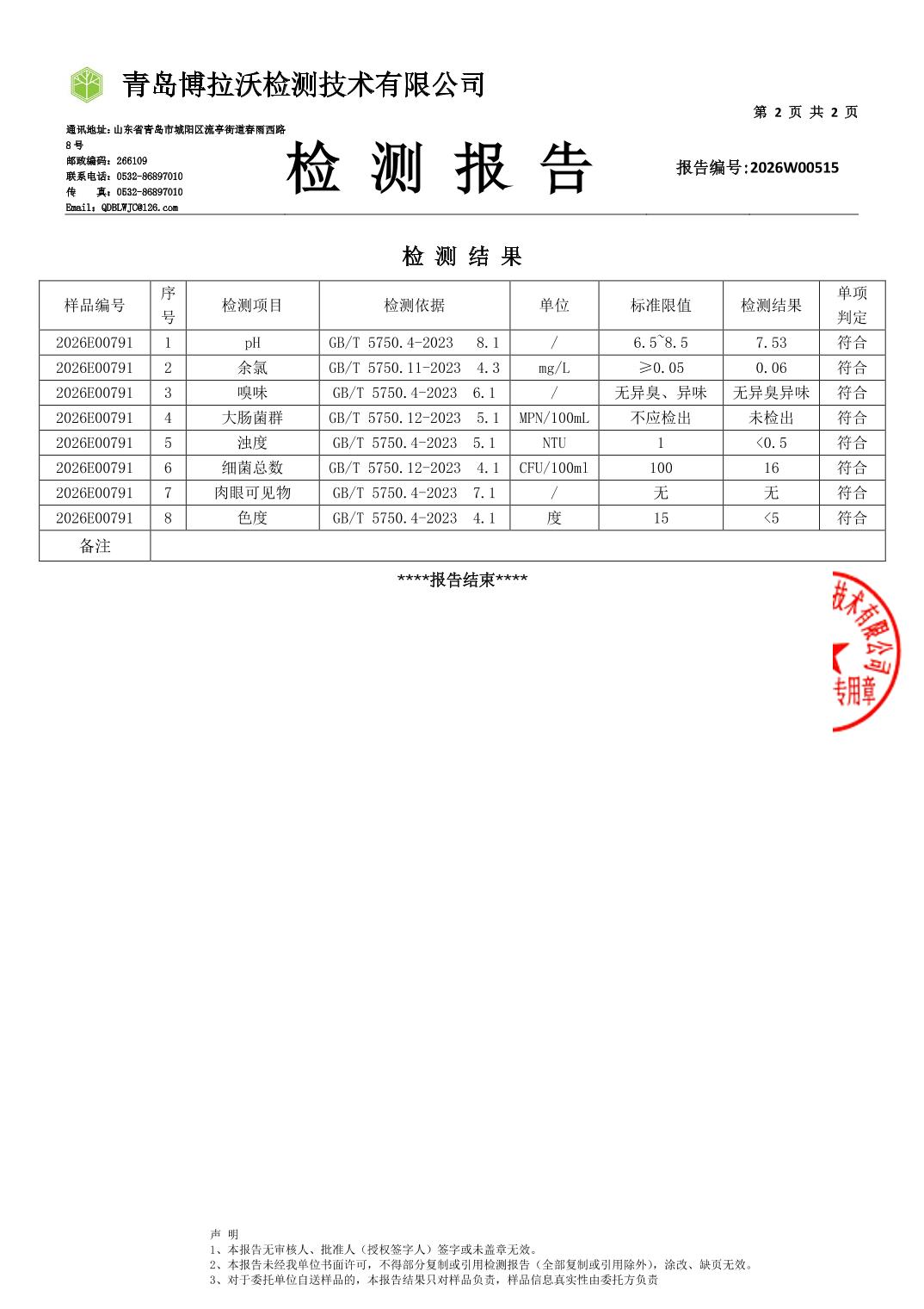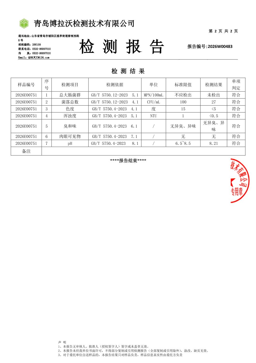 | [标 题] | 合川城区2026年1月水质监测报告 | ||