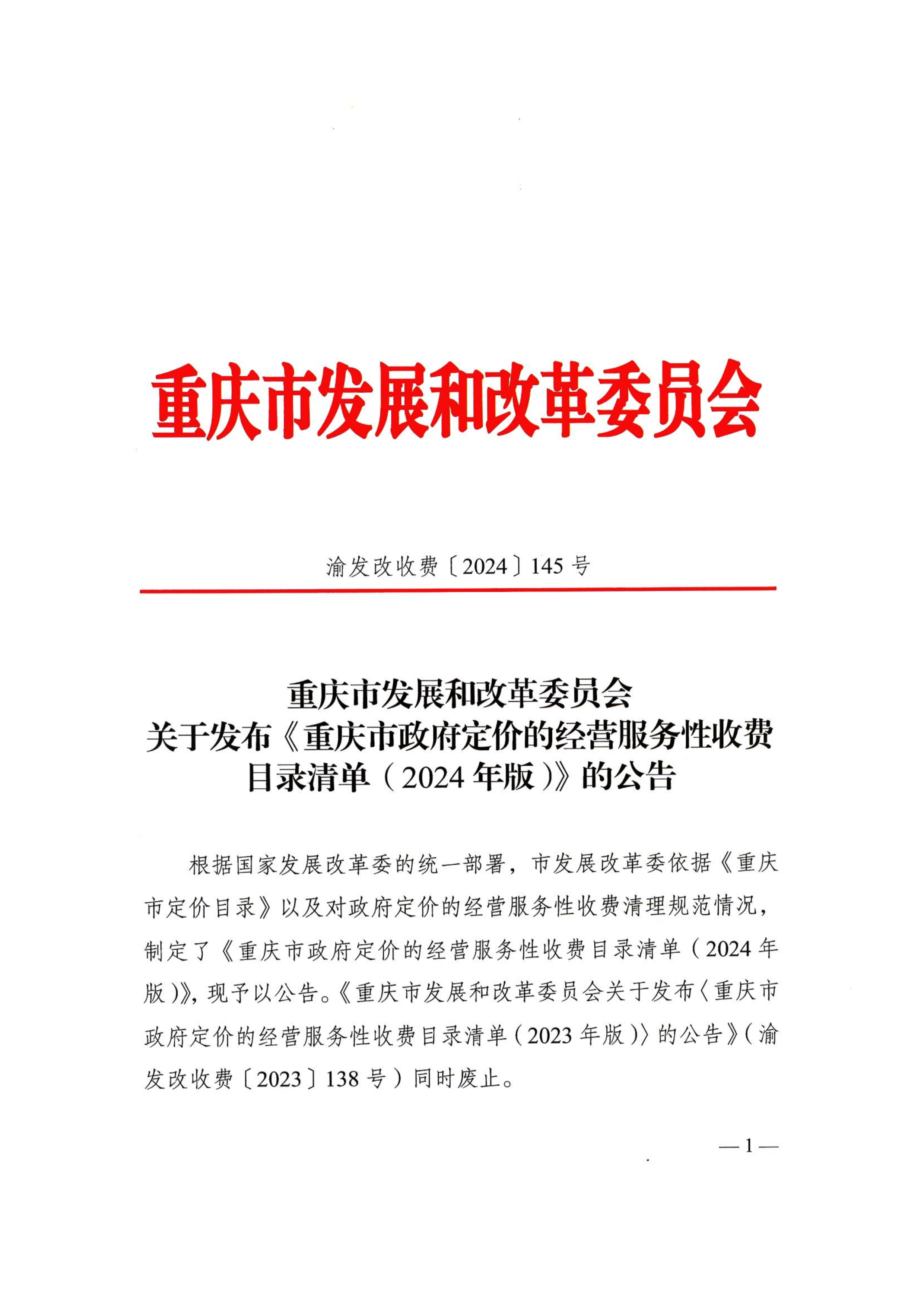 | [索 引 号] | 11500382009325397Q/2024-00013 | [发文字号] | 渝发改收费〔2024〕145号 |