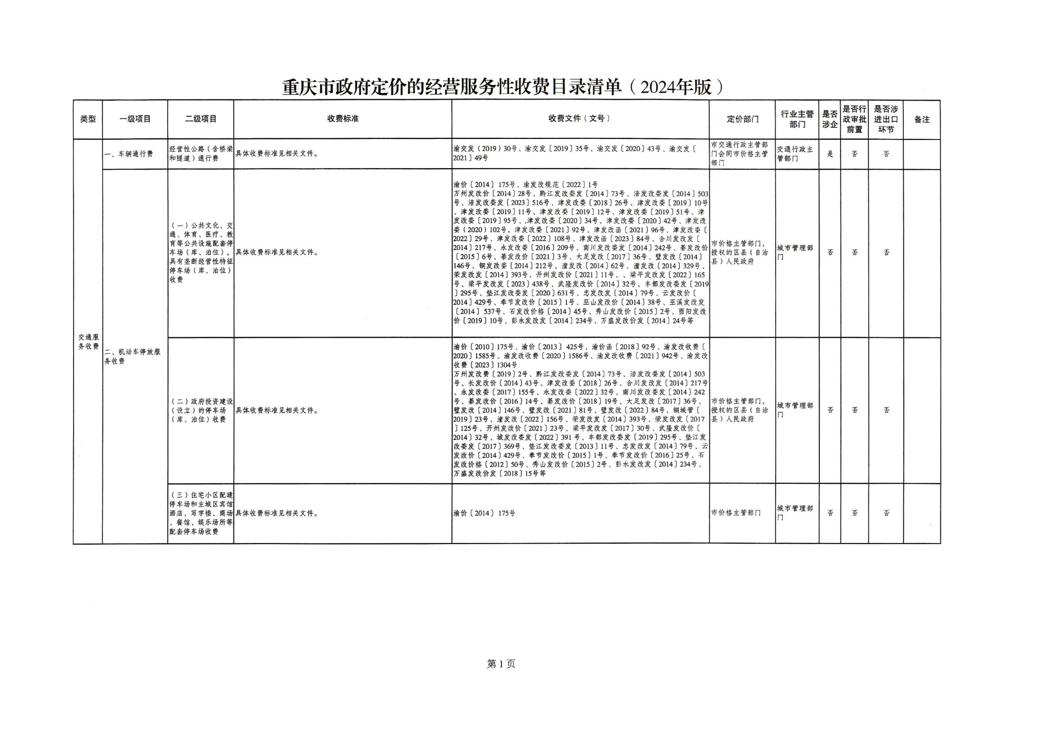 | [标 题] | 关于发布《重庆市政府定价的经营服务性收费目录清单(2024年版)》的公告 | ||