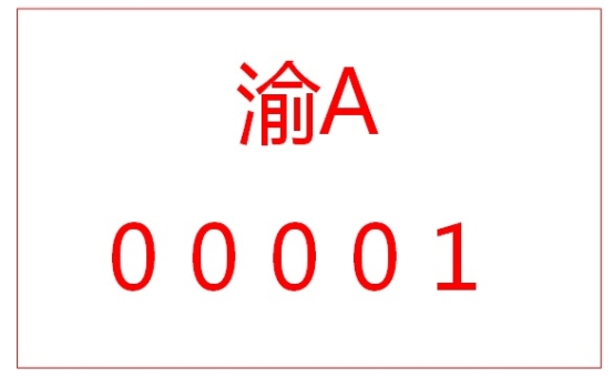 电动自行车号牌的规格(单块):长150mm,宽100 mm,白底,红框,红字,铝质材料,编号为渝A·00001。基本样式如下: