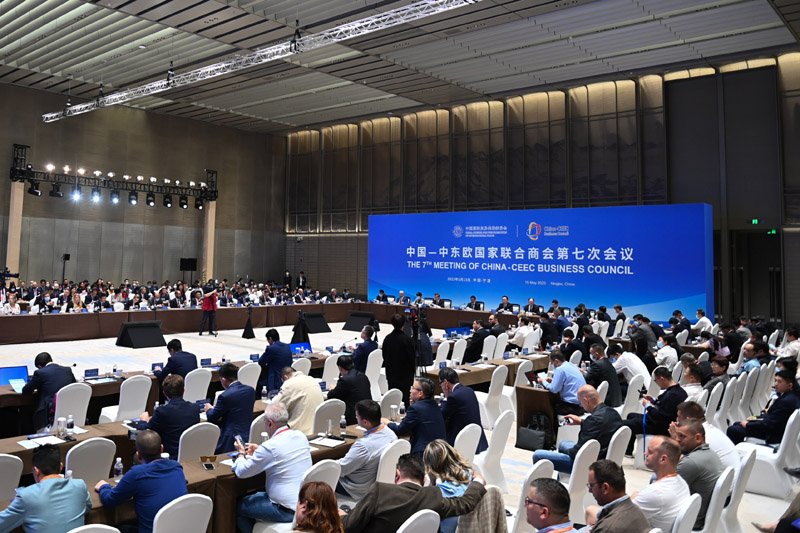 中国—中东欧国家联合商会第七次会议开幕式现场(5月15日摄)。新华社记者 黄宗治 摄