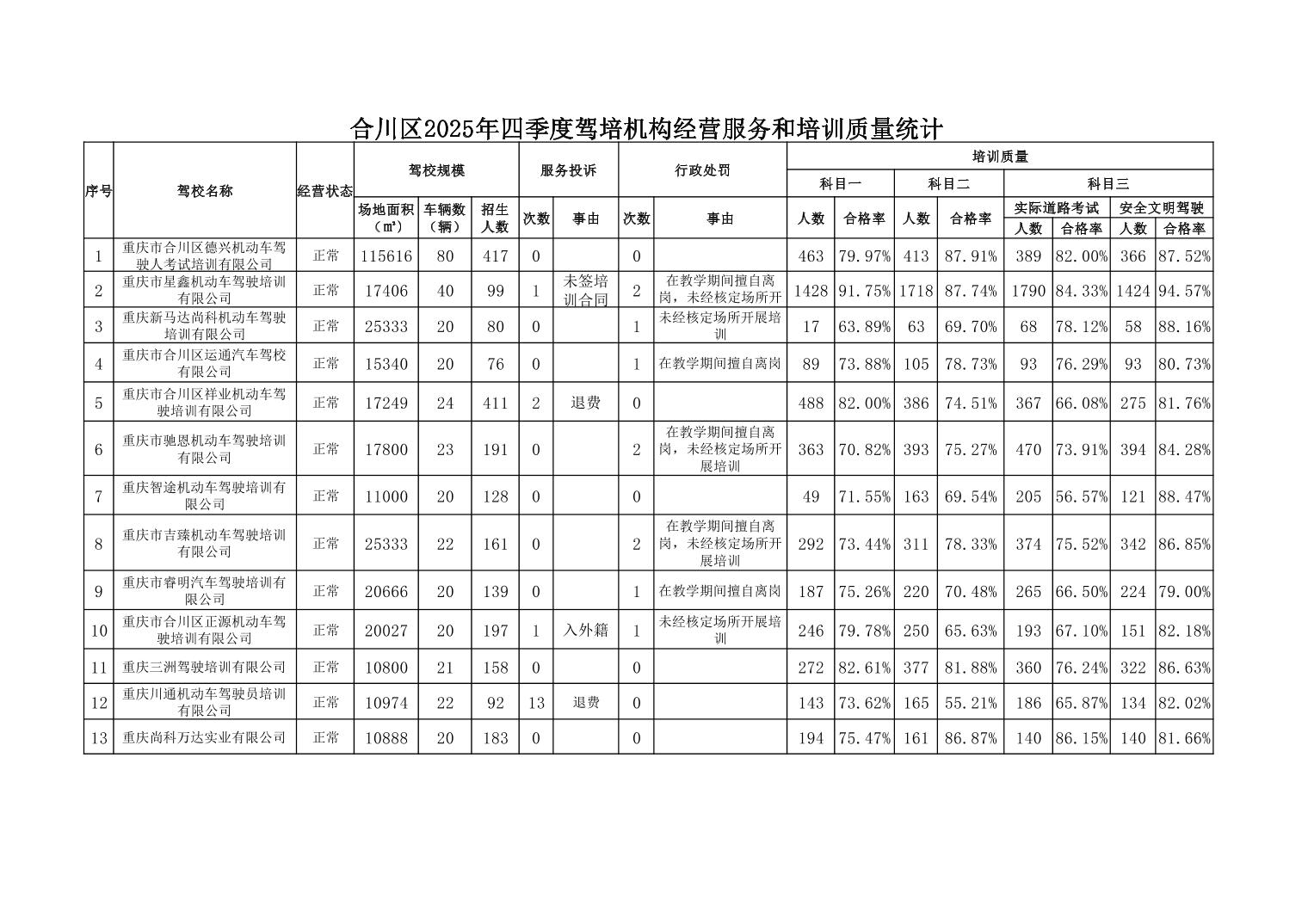 为了方便广大市民充分了解我区机动车驾驶员培训机构规模大小、经营服务、培训质量、接受行政处罚等情况,择优选择驾培机构,区交通运输委员会汇总了2025年四季度相关数据,现通告如下。