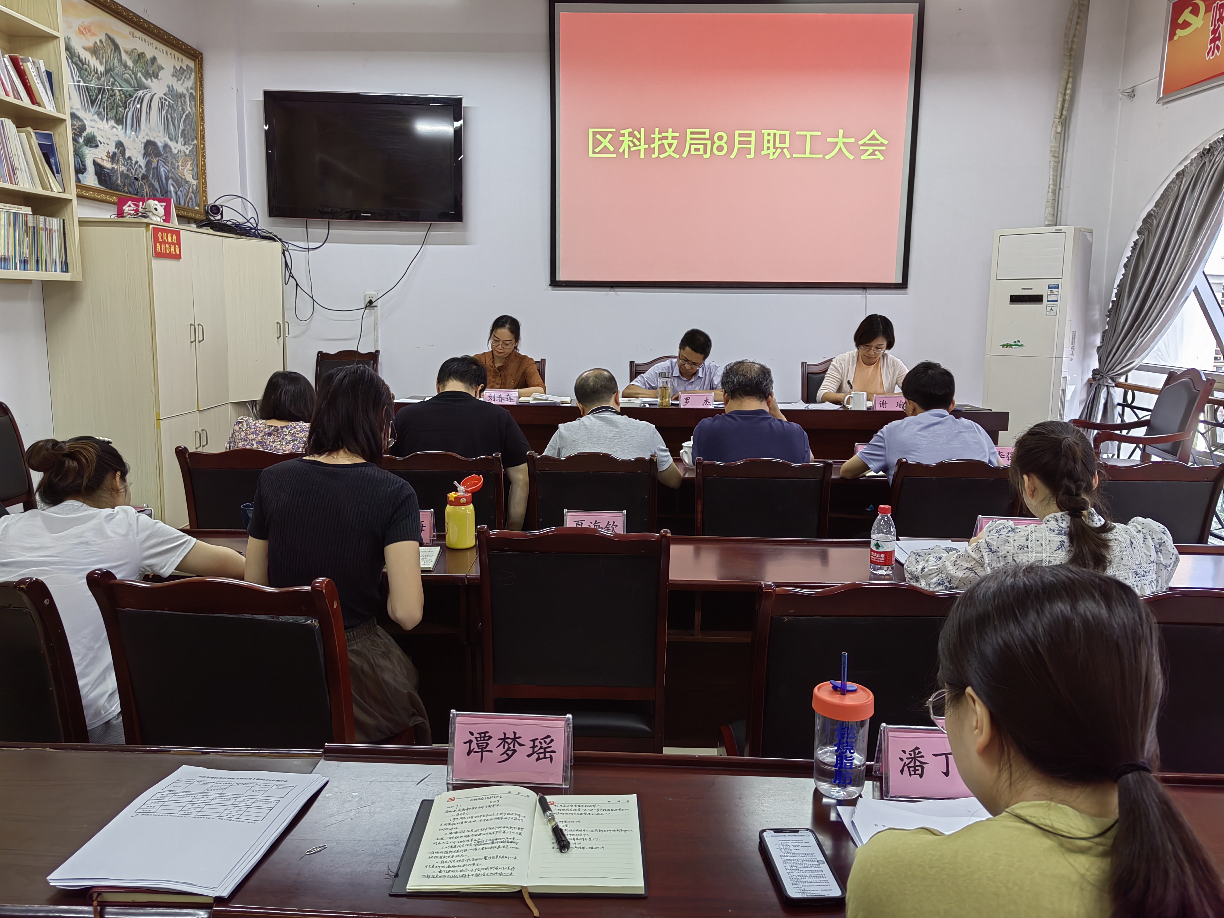 9月5日,区科技局召开8月职工大会,全体机关干部参加会议。