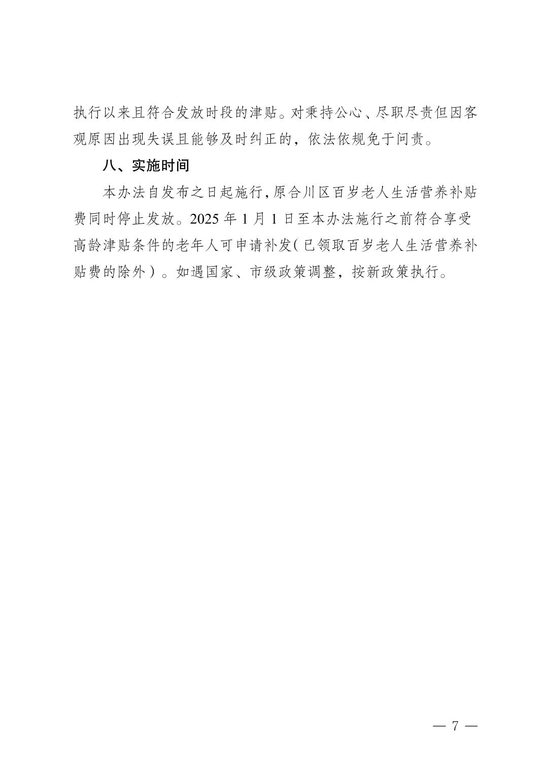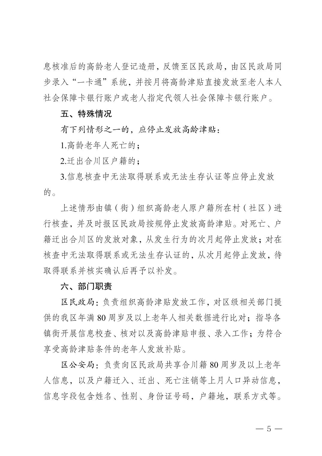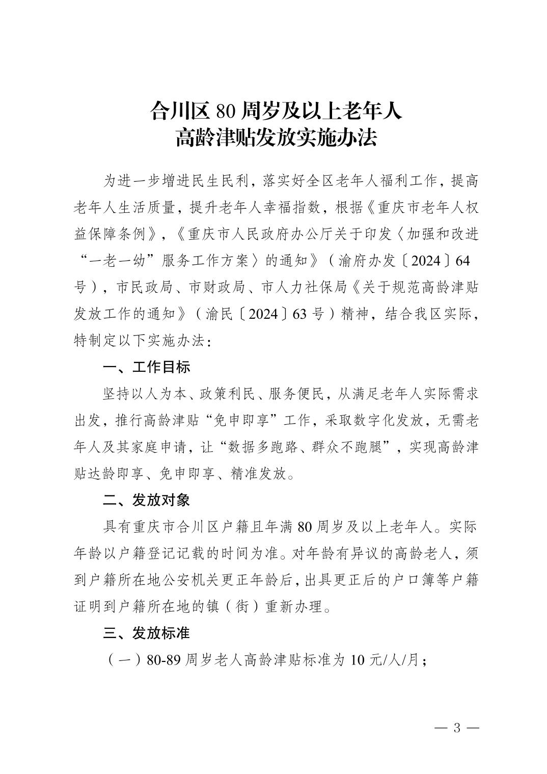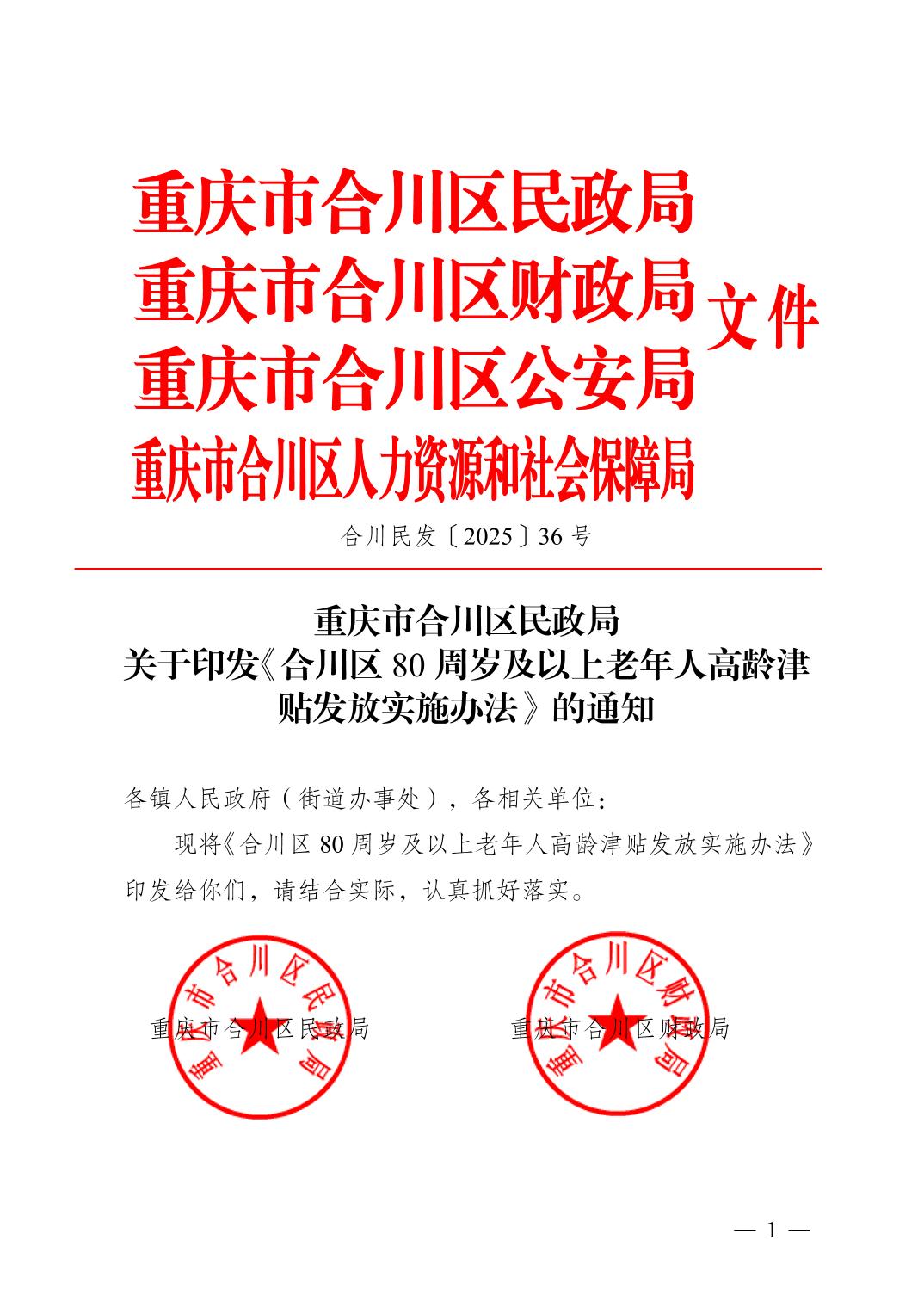 | [标 题] | 关于印发合川区80周岁及以上老年人高龄津贴发放实施办法的通知 | ||