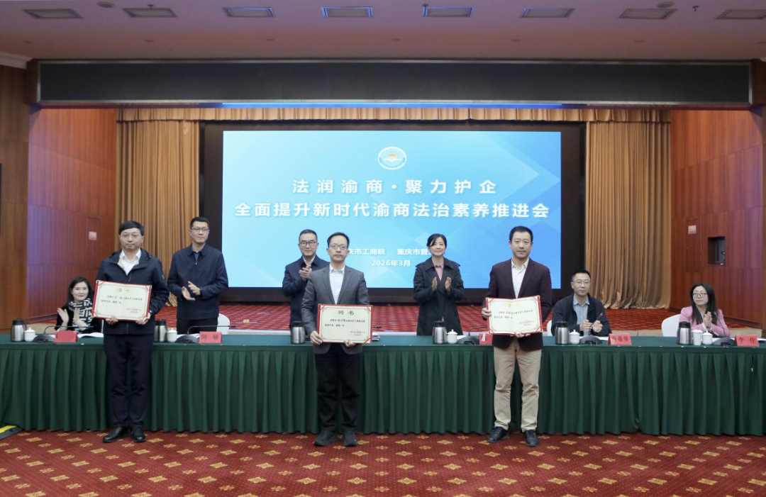 3月30日下午,重庆市工商联、重庆市司法局、重庆市普法办联合召开“法润渝商·聚力护企”全面提升新时代渝商法治素养推进会,举办2026年首期“渝商学法”——劳动用工专题讲座,着力打造“法润渝商·聚力护企”法律服务品牌,引导民营企业逐步完善中国特色现代企业制度,为重庆民营经济高质量发展筑牢法治与廉洁根基。