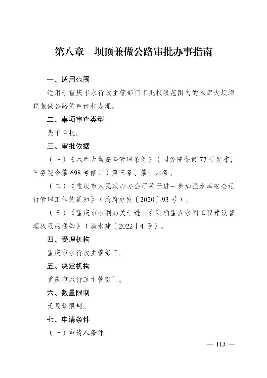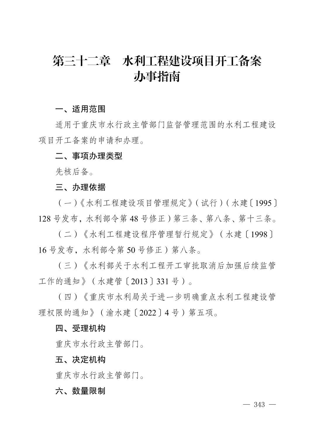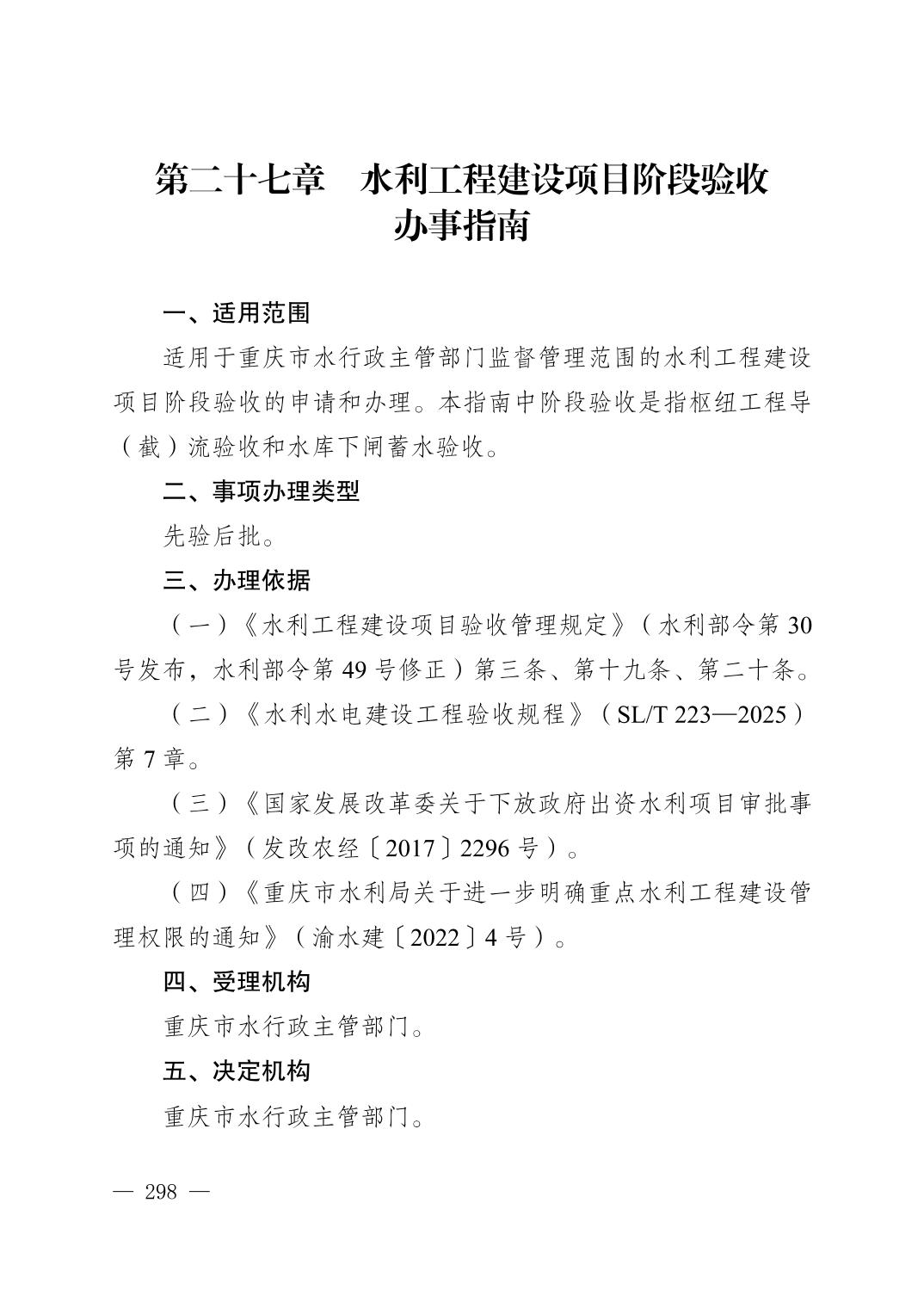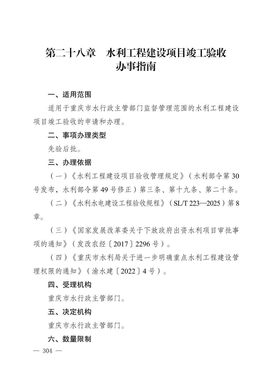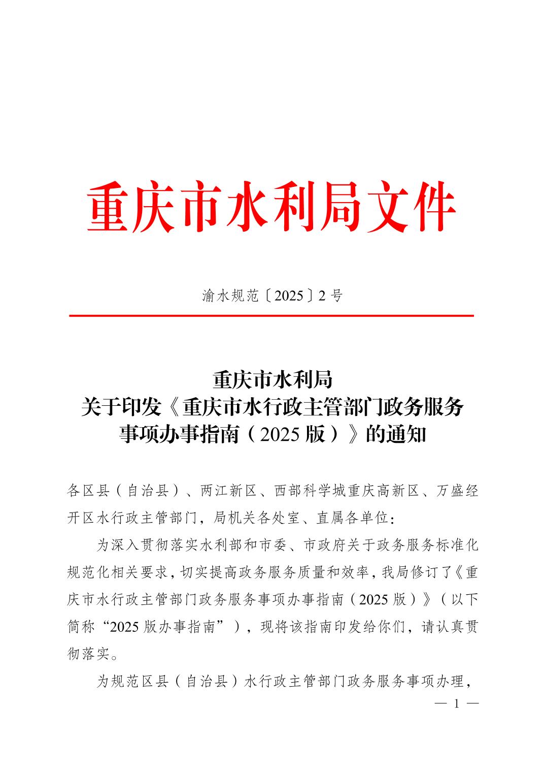 | [标 题] | 合川区水利局转发重庆市水利局关于印发《重庆市水行政主管部门政务服务事项办事指南(2025版)》的通知 | ||