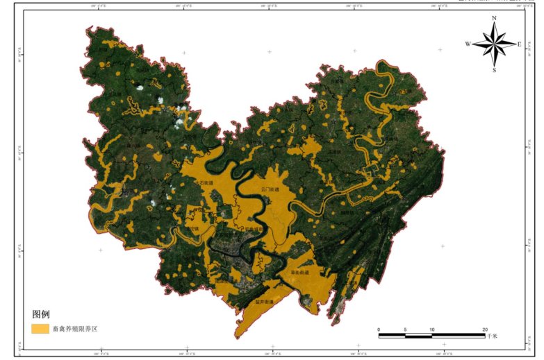全区划定畜禽养殖适养区面积1496.08平方公里,占全区辖区面积的63.82%(表1、附图5)。