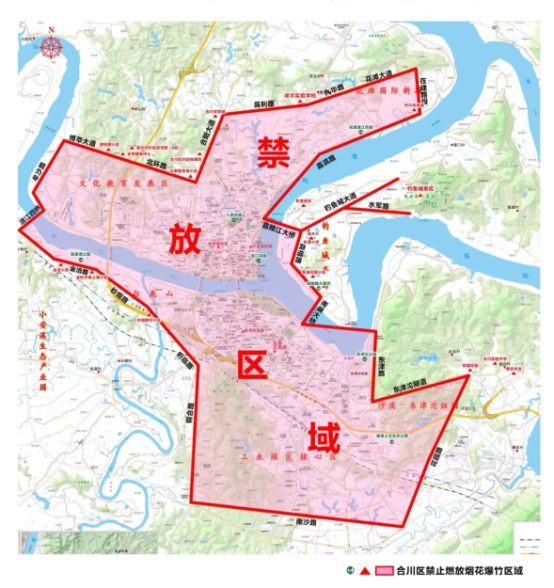 合川区禁止燃放烟花爆竹区域示意图