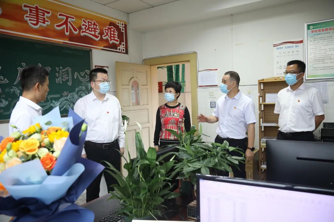 9月9日上午,在第38个教师节来临之际,区委副书记、区长姜雪松,区人大常委会主任程卫,副区长袁晓钦,区政协副主席莫智红等领导代表区四大班子先后莅临合川中学看望慰问教师代表,并向我校教育工作者致以节日的问候和美好的祝愿。校党委书记罗友,党委副书记、校长傅林陪同。