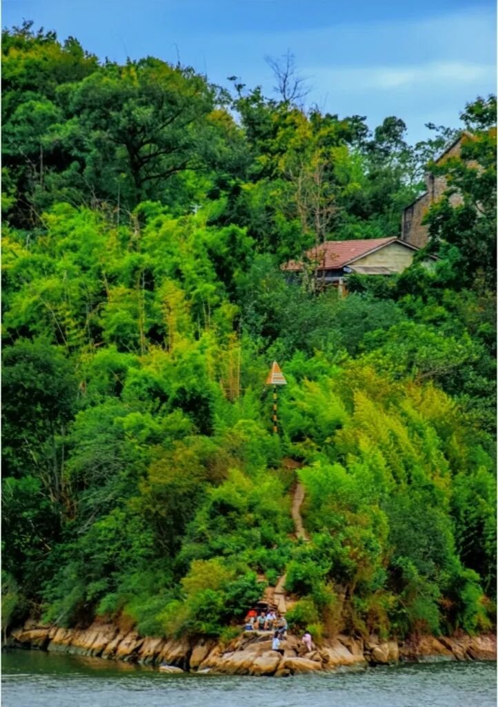 在游船的二层甲板上极目远眺,鳞次栉比的青瓦屋,沿着山坡层层攀附生长,似与山峦融为一体。草街渔村生机盎然,沿阶而下,更有众多江边野生打卡点,玩累了在渔村美美吃一顿,不失为给自己放一天秋假的好选择。