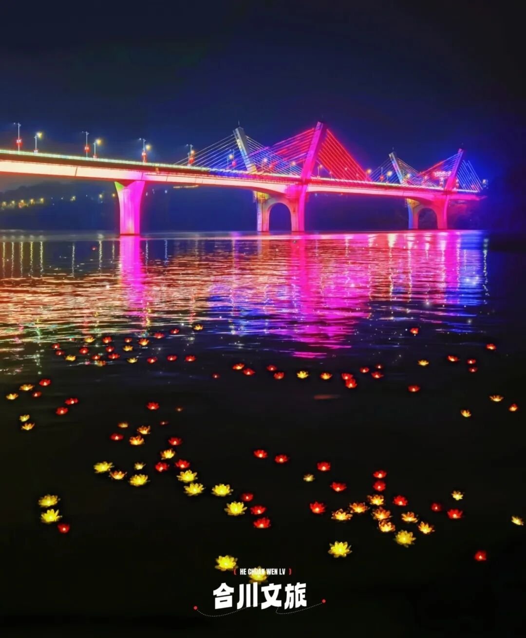 内容:嘉陵江最美江湾河灯投放