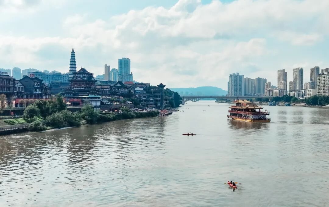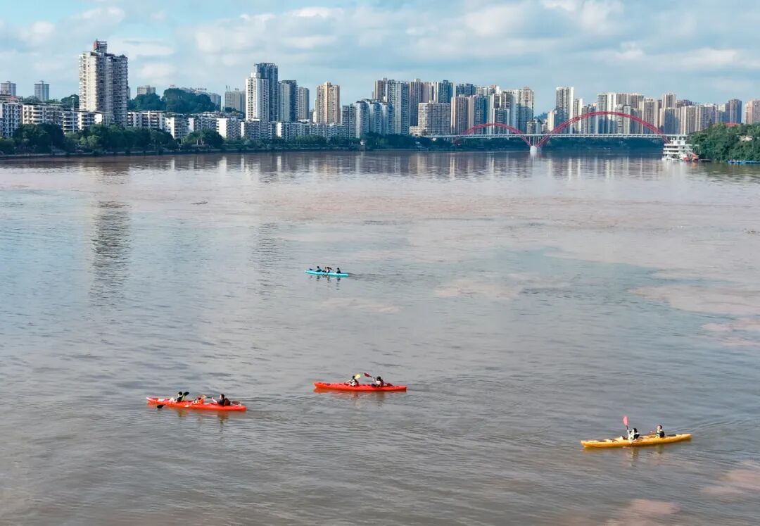 文峰古街码头的水上项目成为游客青睐的游玩选择,一艘艘或红或蓝的小船在江面缓缓滑动,仿佛在为碧绿的水面画上彩妆,这幅人与自然和谐共生的和美画卷,展现出合川三江交汇的灵韵。