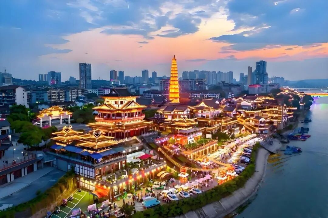 文峰古街坐拥巴渝吊脚楼群与三江交汇的绝景,文峰塔与会江楼在此遥望,古今交融,被誉为“洪崖洞分洞”,成为游客必到的网红打卡地。街区规划“临江长桌宴”、“火锅风情街”、“江岸夜市街”三大主题板块,形成环形游览动线,串联起会江楼民俗展演等丰富场景,可承载万人规模活动。紧邻主干道,交通停车便利,合川区无人机表演起飞点、最佳观看点。