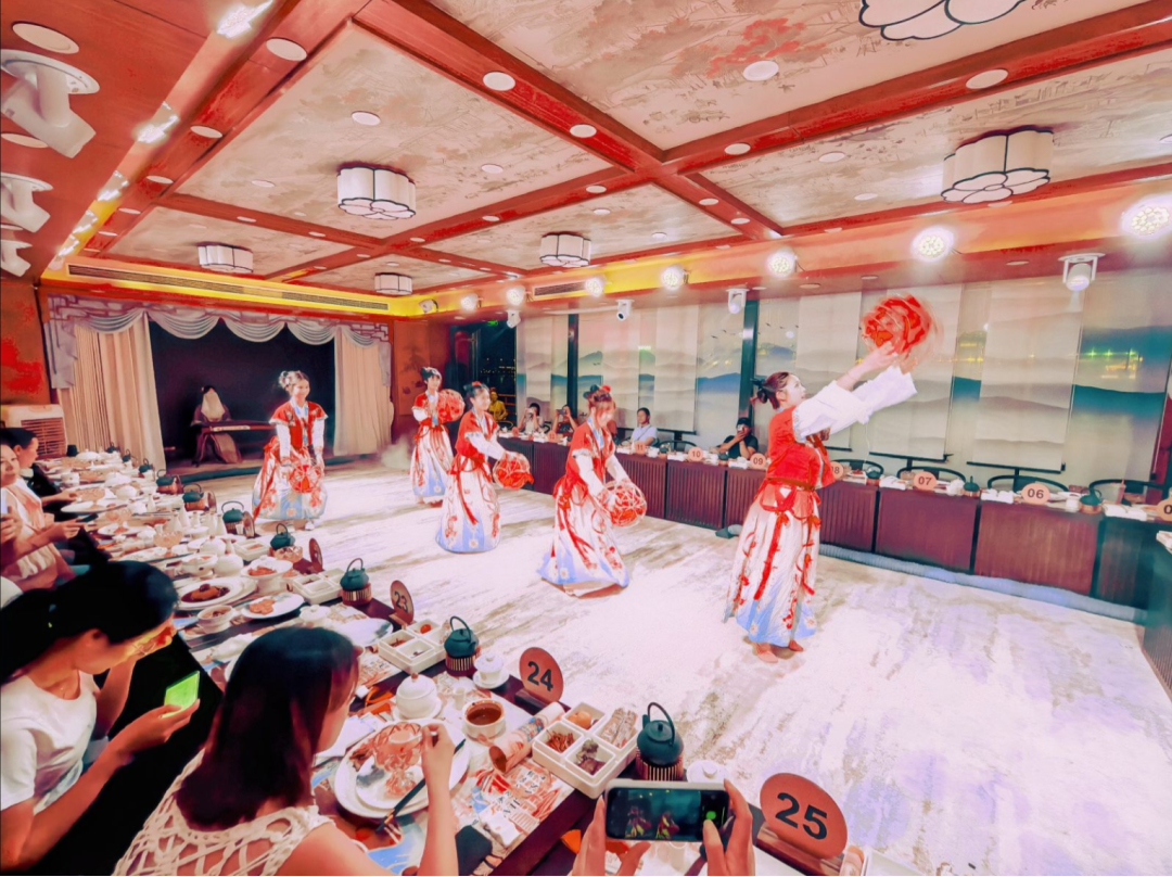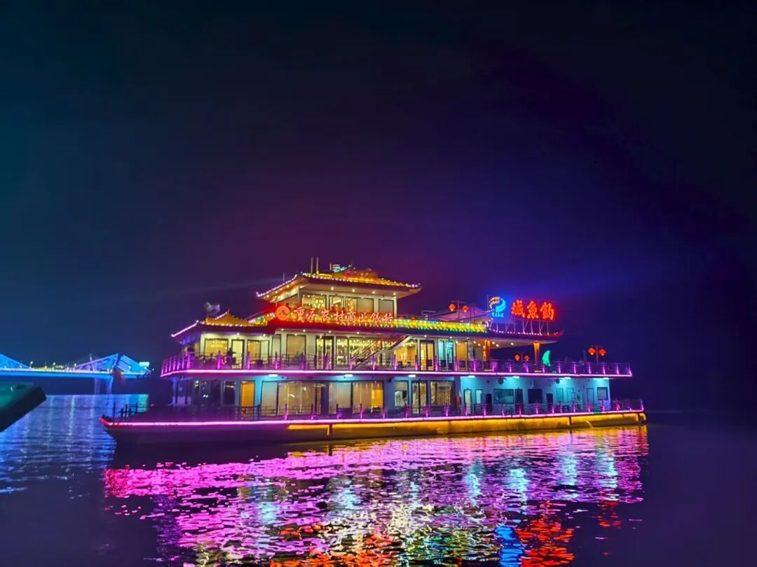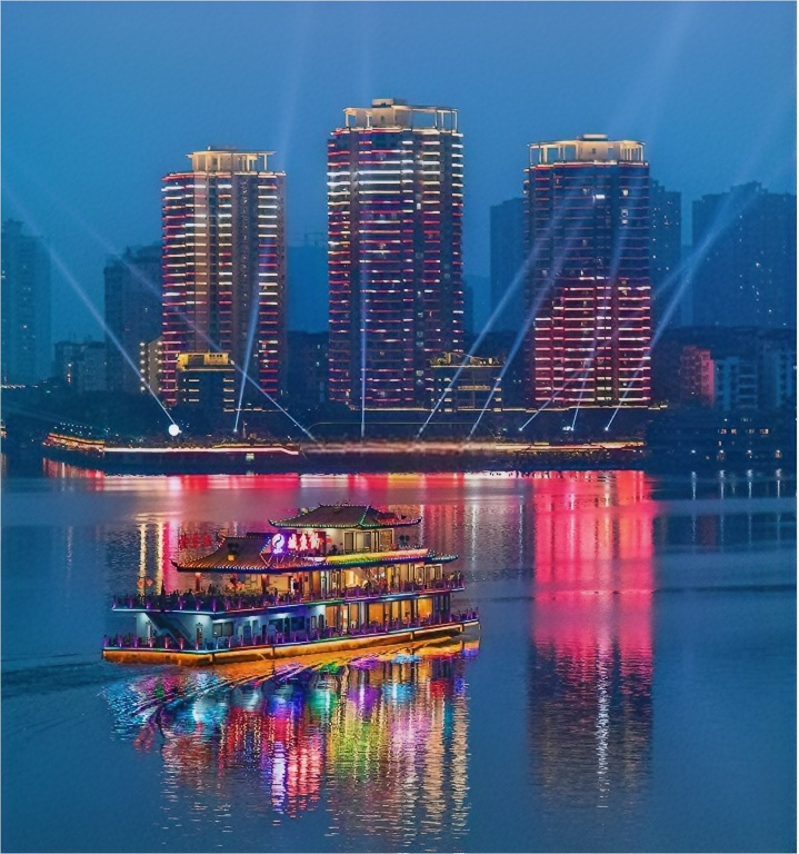 “钓鱼城号”游轮推出宋韵“三江夜宴”,以合川三江文化、巴渝历史为魂,融合宋代风格游船,将“夜游三江”与“宫廷御宴”结合,打造古韵歌舞、乐曲、诗词与美食一体的沉浸式体验。黄昏登船开启惬意时光,尝御宴、赏歌舞。夜幕下,嘉陵江、涪江两岸霓虹璀璨,景点灯彩点缀,三江夜景与宋韵宴饮相衬,成就合川“江上宋味”文旅体验。