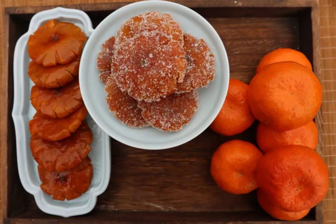 合川区沙鱼镇的橘饼是用带橘皮的红橘加工而成的天然食品,去除了橘皮中的苦味,色泽橙红、不含任何色素、口感细腻。