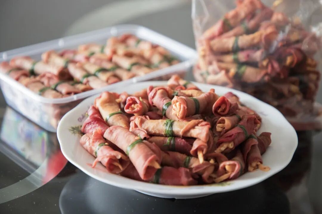 合川区龙市镇青草坝出产的沙罐萝卜,个大皮薄,颜色鲜艳,萝卜肉白嫩、汁水浓、味道甜,还可做水果解馋。青草坝萝卜卷的制作技艺在青坝村已经传承了200 余年,为重庆市非物质文化遗产代表性项目。其味鲜美,有麻、辣、鲜、香、脆、甘等特点,不仅是家居餐桌上的一道佳肴,也是旅行途中的一味可口小吃。
