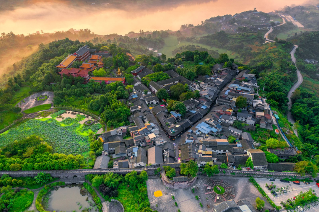 涞滩古镇位于合川区涞滩镇,镇内有明清时期小青瓦房、石街小巷、清代建筑文昌宫、全国重点文物保护单位——二佛寺、西南地区唯一保存完好的古代军事瓮城防御性堡垒建筑——瓮城等,古镇集古寺、古佛、古居于一体,拥有深厚的古镇文明、典型的川东古镇民居、博大的禅宗文化和独特的石刻艺术,是首批中国十大历史文化名镇、中国十大最美丽村镇、国家AAAA 级旅游景区,入选2013 年中国八大古镇特种邮票。