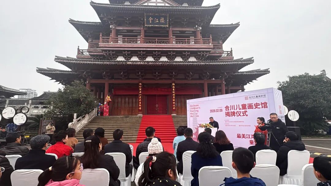 2月9日上午,合川儿童画史馆揭牌仪式在“最美江湾”文峰古街会江楼举行。