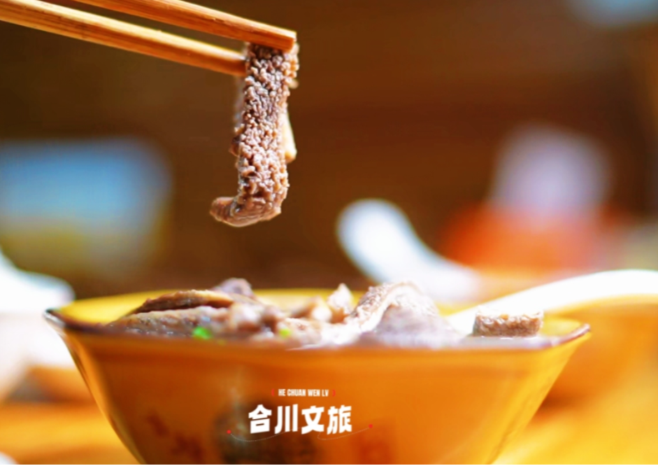 肥肠汤是合川特色美食,将当归与肥肠同炖,药食同源,滋补养生。配米粉、米饭作早餐,汤鲜味醇、营养可口,既是日常美味,也承载着合川饮食文化,成为文旅交流的特色名片。
