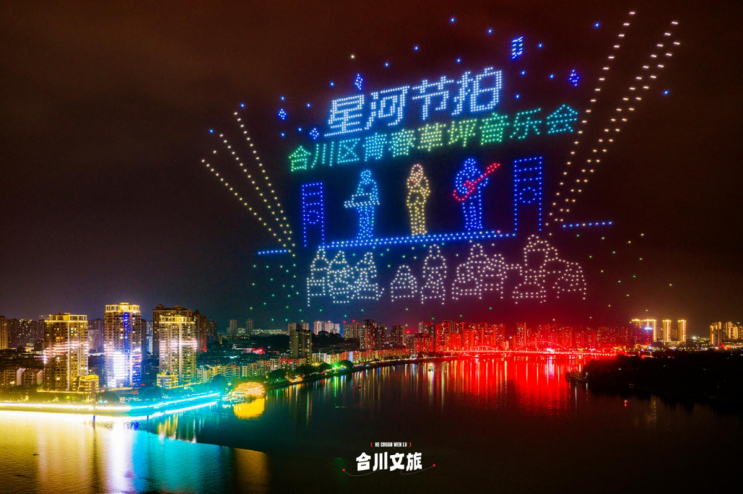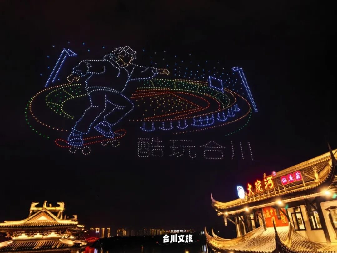 震撼光影无人机光影秀点亮合川夜空