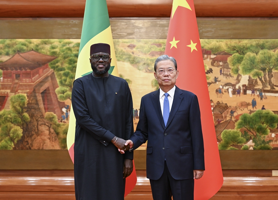 1月27日下午,全国人大常委会委员长赵乐际在北京人民大会堂同塞内加尔国民议会议长恩迪亚耶举行会谈。