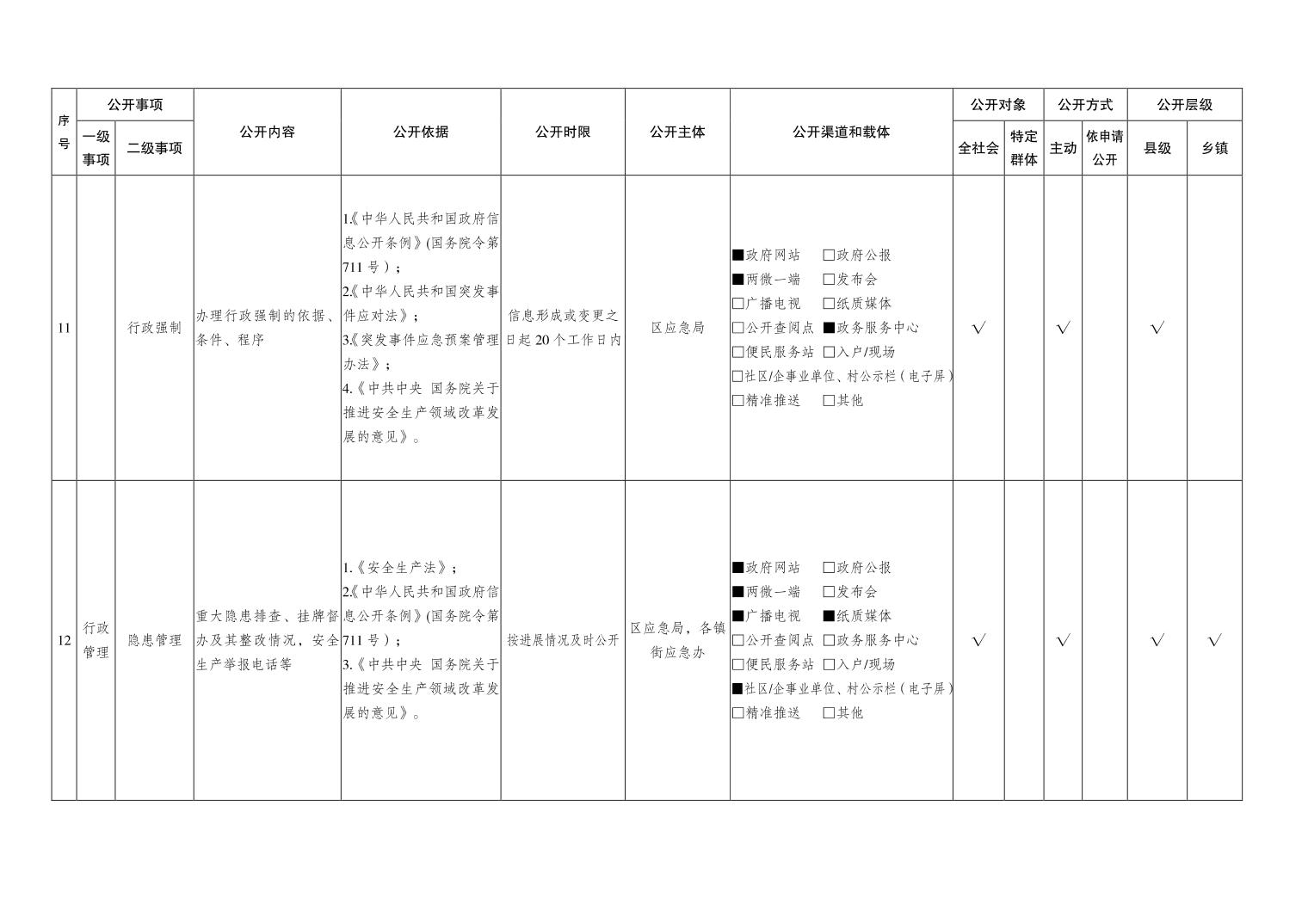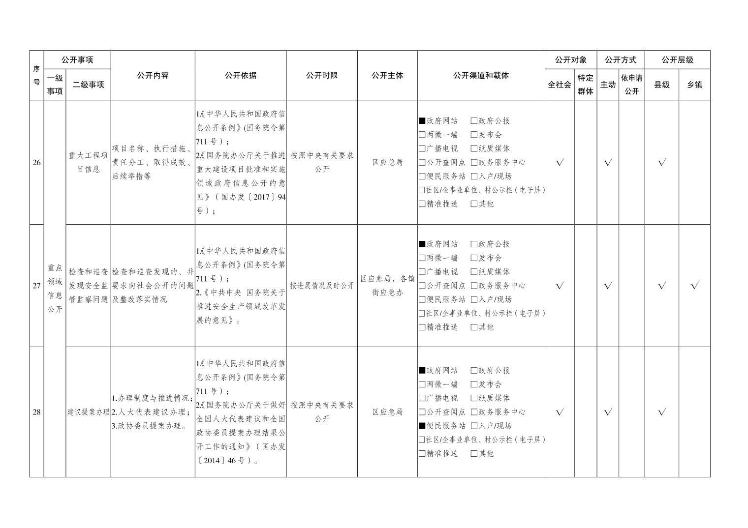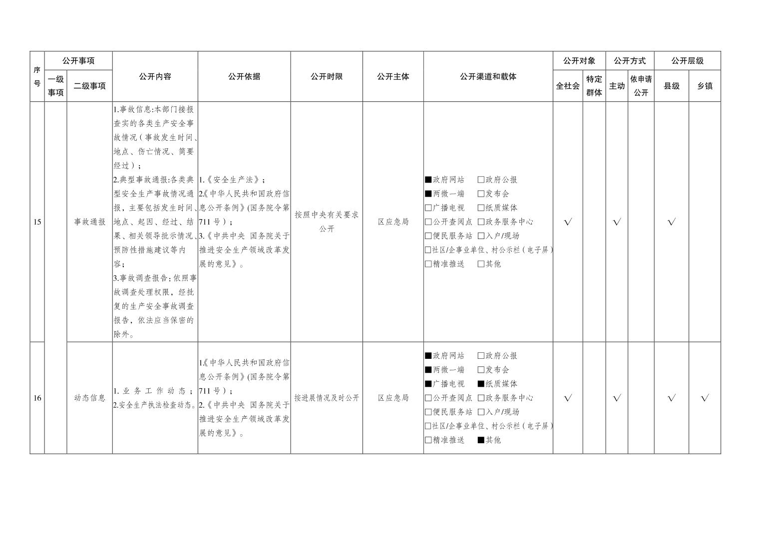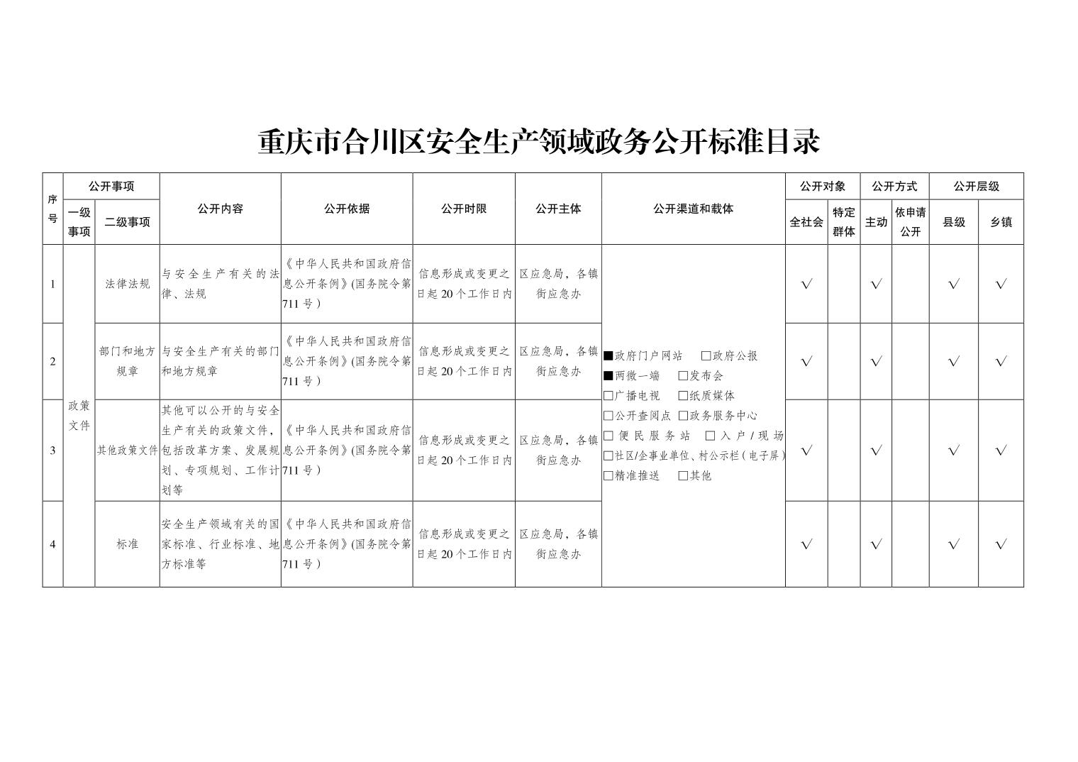 | [标 题] | 重庆市合川区安全生产领域政务公开标准目录 | ||