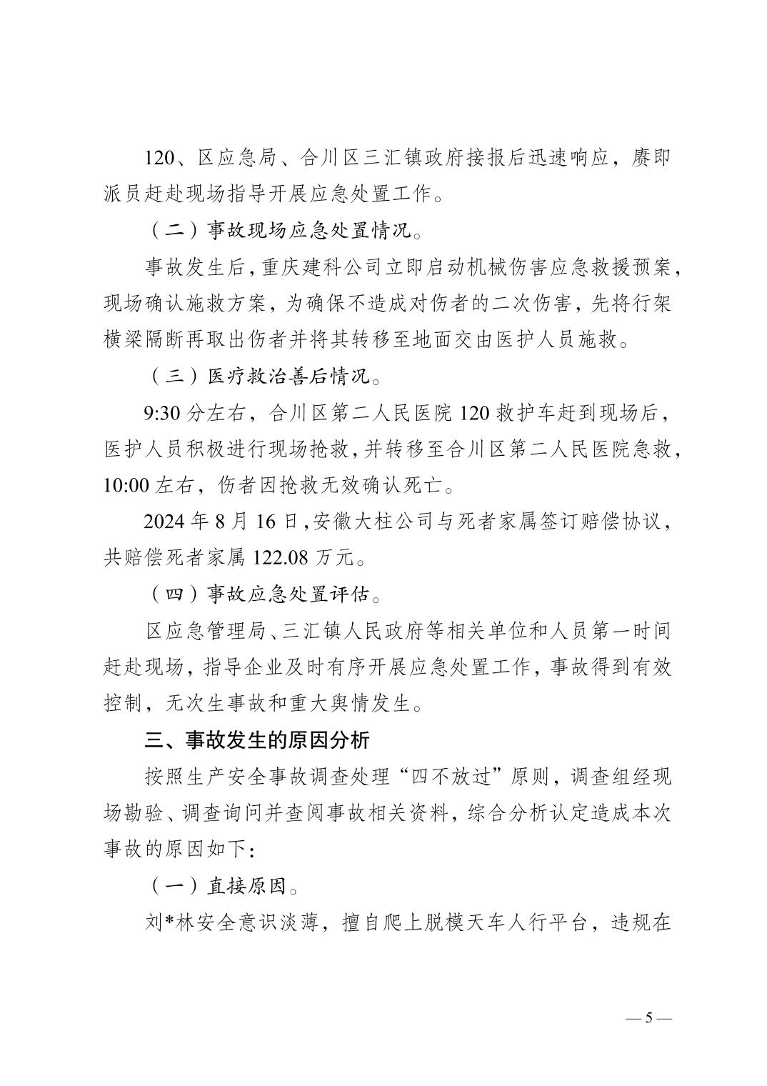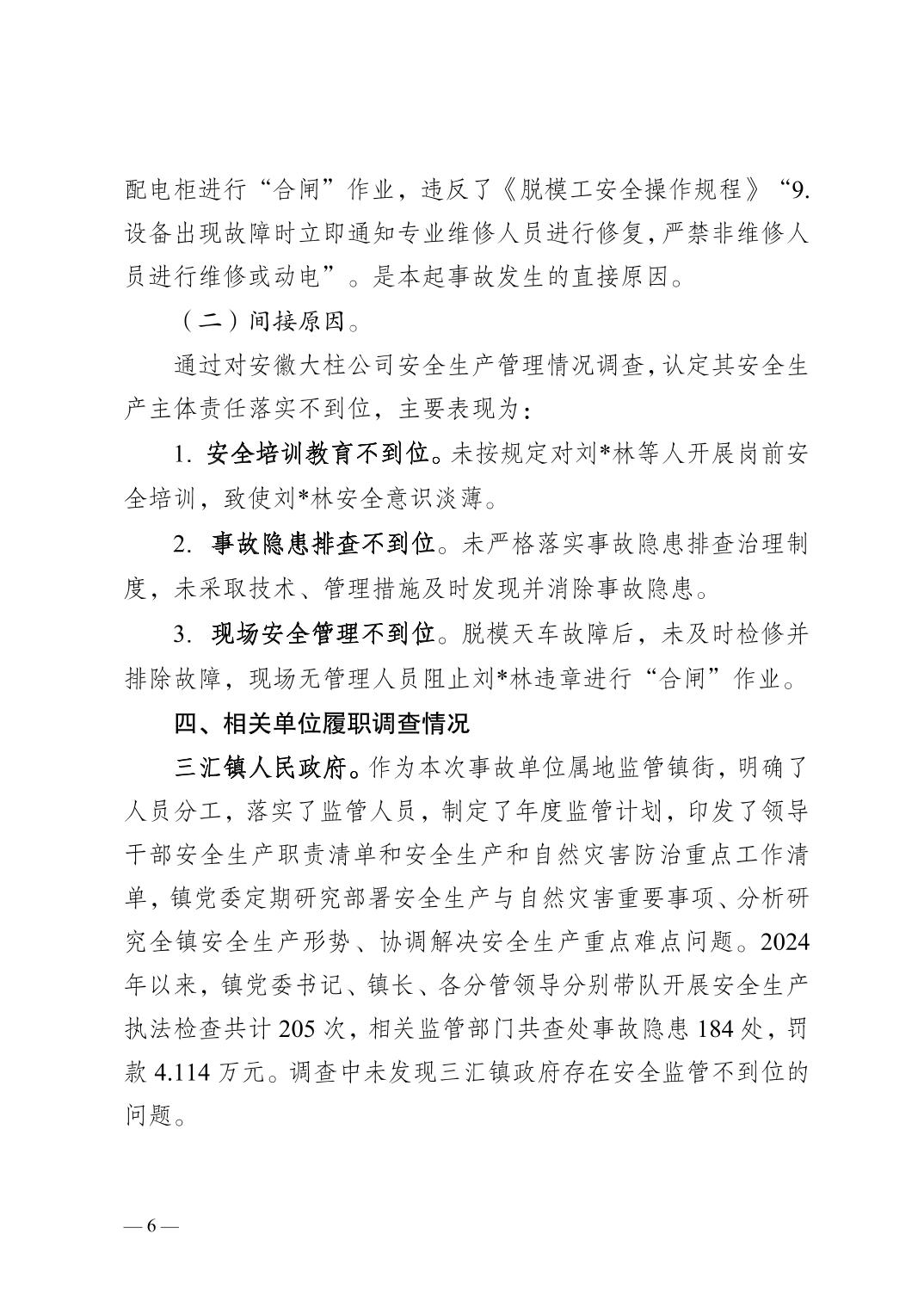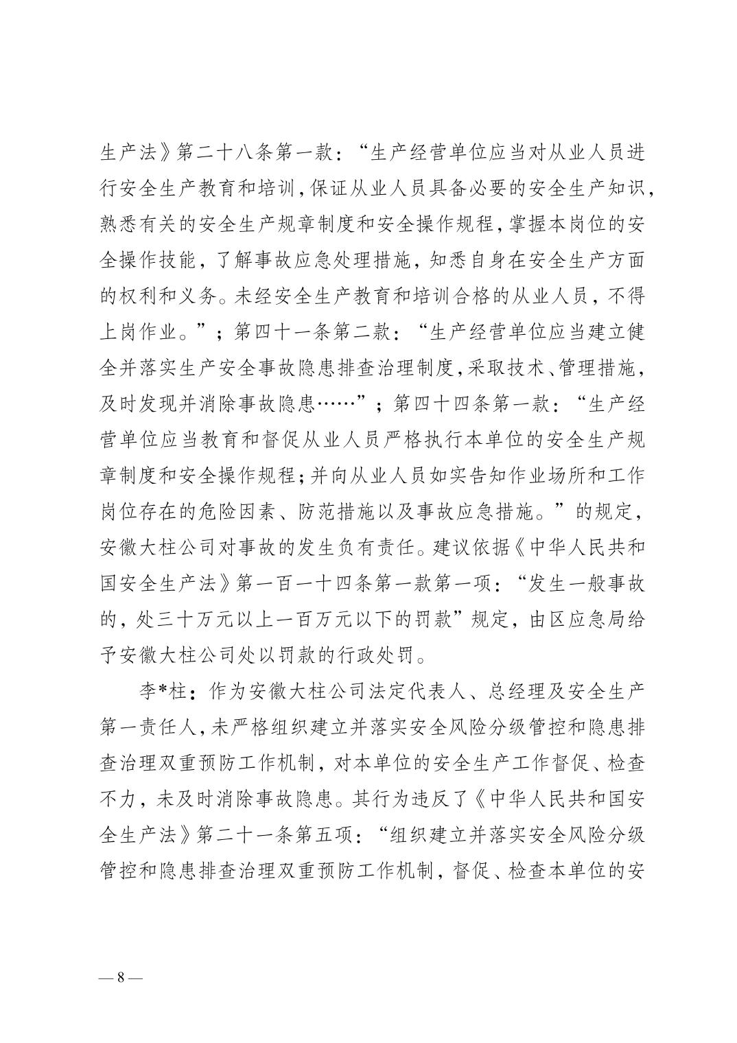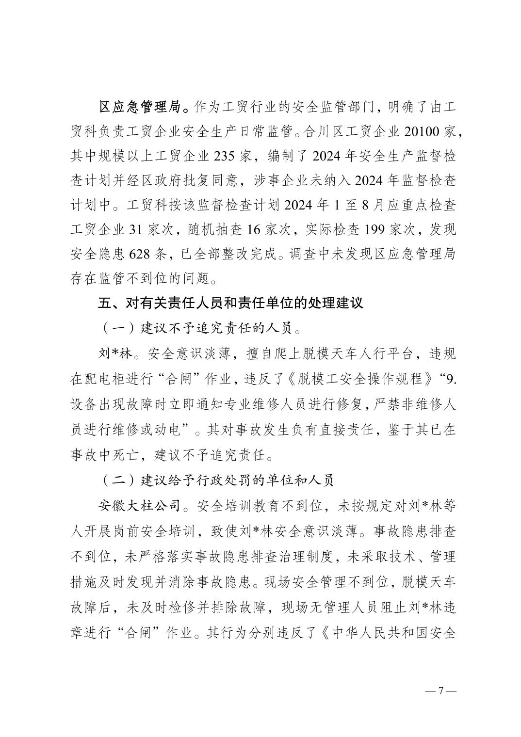 | [标 题] | 合川三汇安徽大柱建设有限公司8.15一般机械伤害事故调查报告 | ||