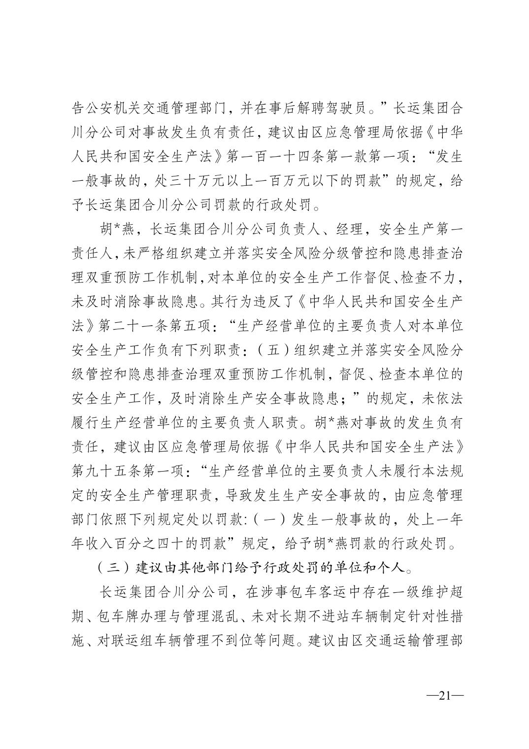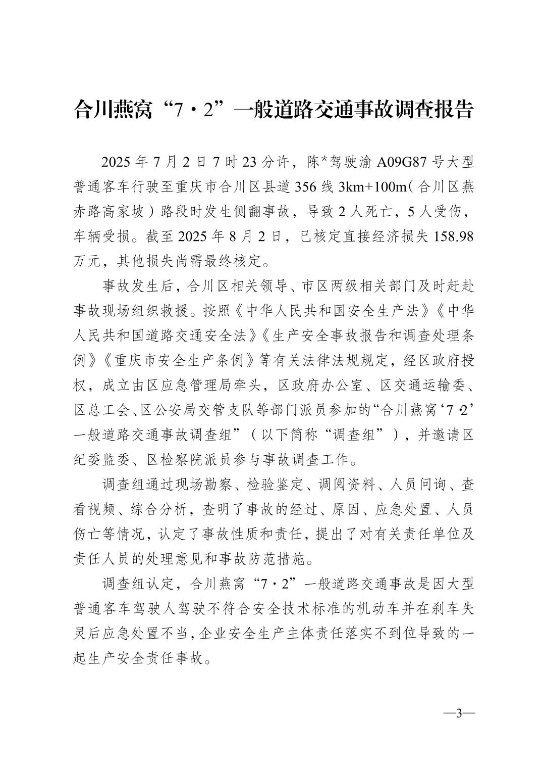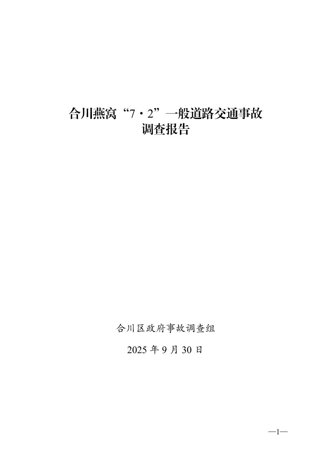 | [标 题] | 合川燕窝“7·2”一般道路交通事故调查报告 | ||