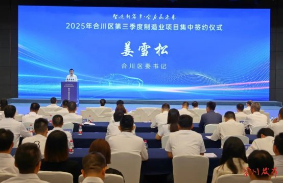 聚发展之力,赴未来之约。9月19日上午,2025年合川区第三季度制造业项目集中签约仪式举行。此次集中签约项目共46个,协议总投资108亿元,涉及智能网联新能源汽车零部件、火锅食材等多个产业,将有力赋能合川“2446”现代制造业集群发展,为全区建设成渝中部地区先进制造业基地注入新动力,为全市打造国家重要先进制造业中心增添新活力。区委书记姜雪松出席并致辞。区委副书记、区政府区长陈桥主持。区政协主席叶华,区委副书记秦敏出席。
