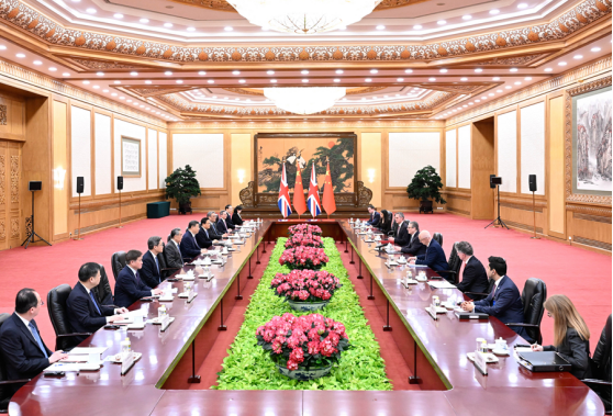 1月29日上午,国家主席习近平在北京人民大会堂会见来华进行正式访问的英国首相斯塔默。新华社记者 李响 摄