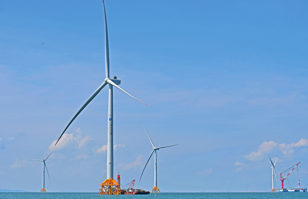 广西首个海上风电示范项目——防城港海上风电示范项目A场址施工现场(2024年5月21日摄)。周华摄/本刊