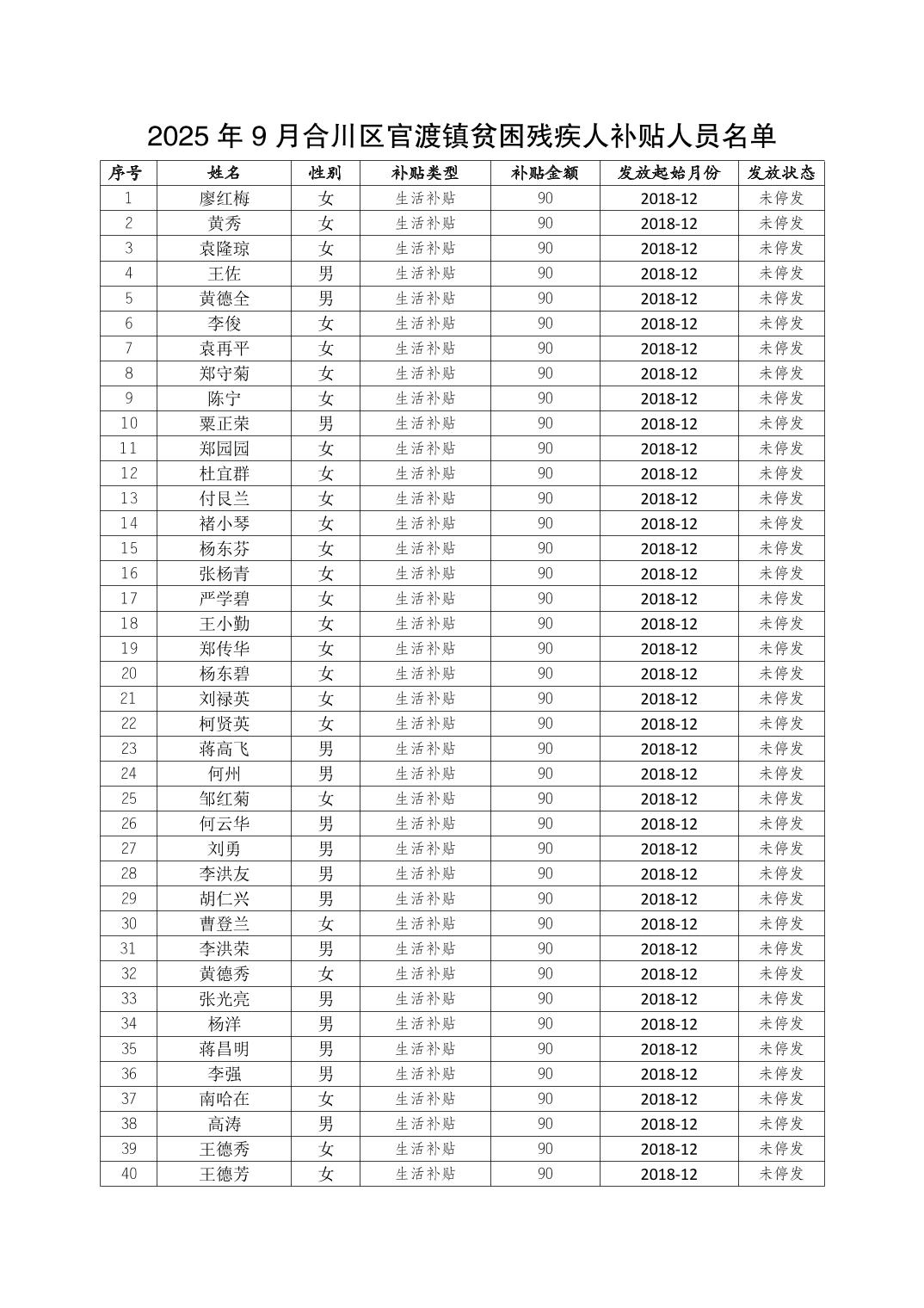 | [标 题] | 2025年9月官渡镇贫困残疾人生活补贴人员名单 | ||