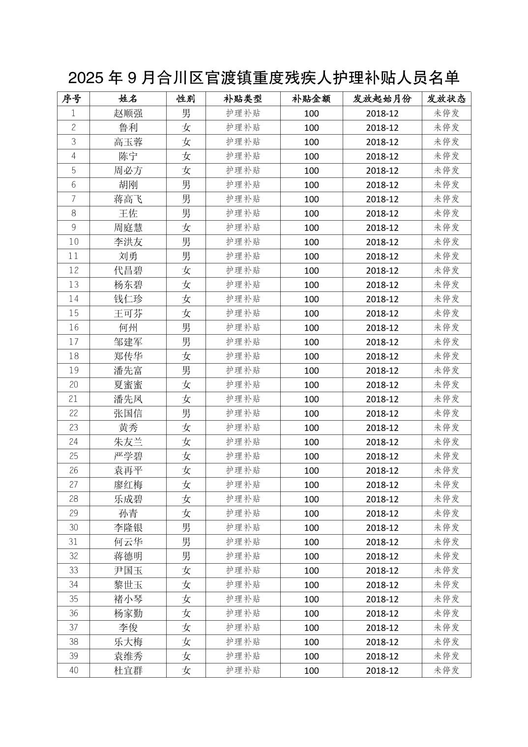 | [标 题] | 2025年9月合川区官渡镇重度残疾人护理补贴人员名单 | ||