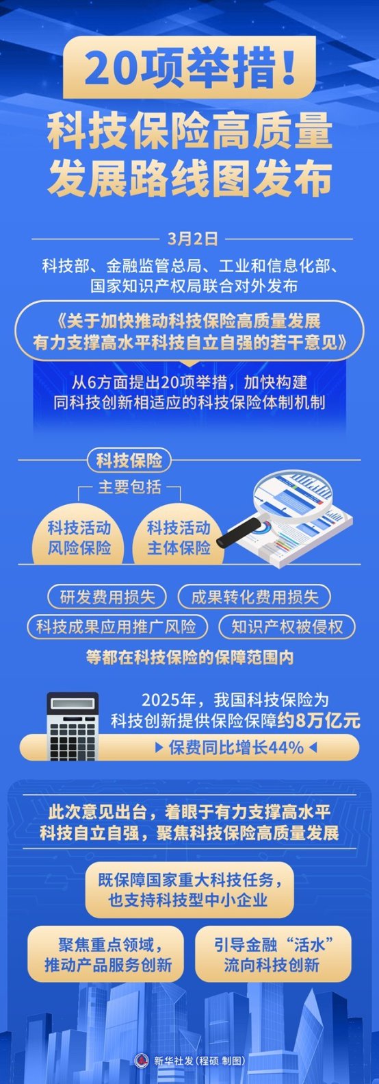 20项举措!推动科技保险从“有保障”迈向“高质量”。