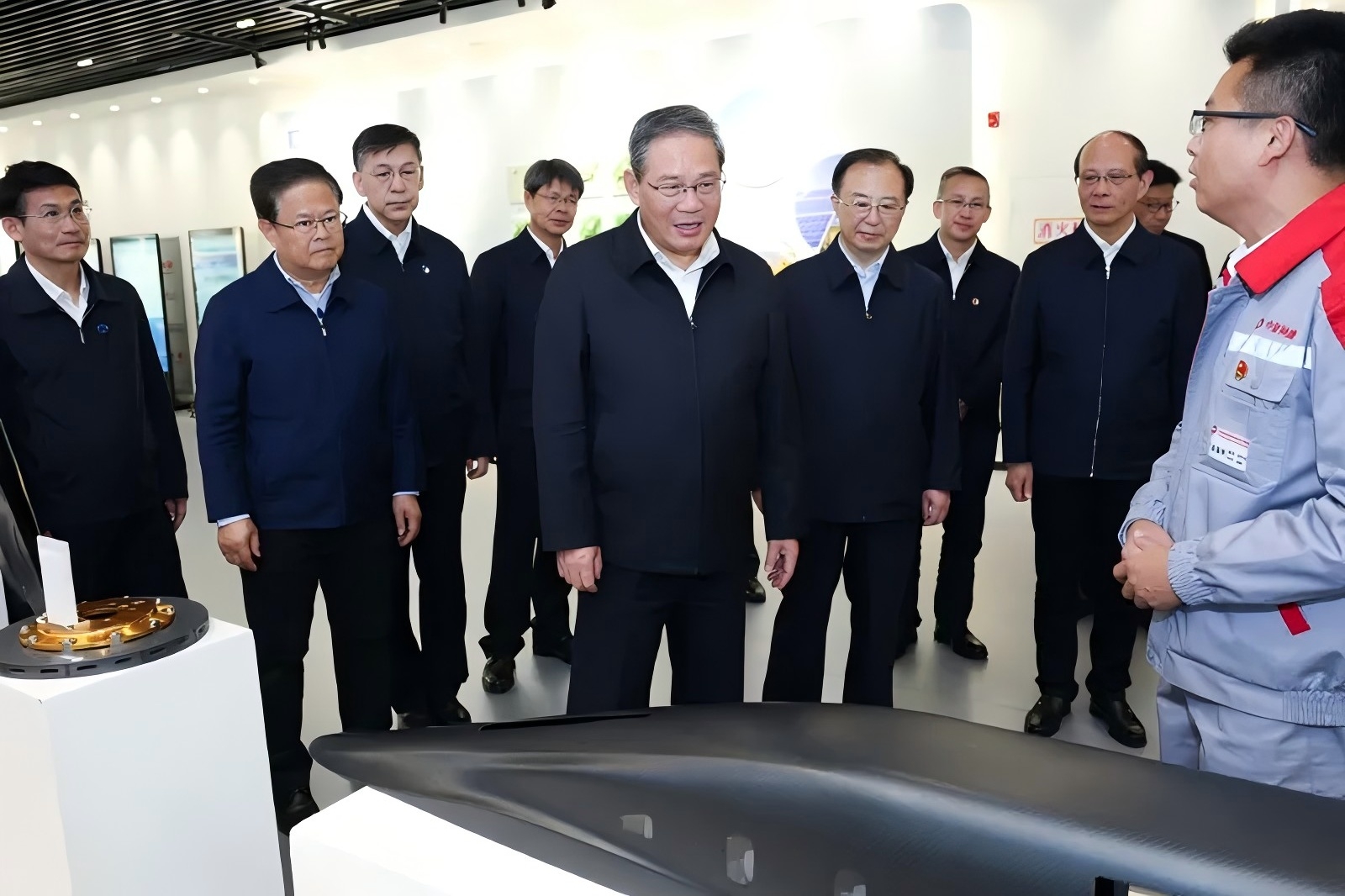 9月15日至16日,中共中央政治局常委、国务院总理李强在甘肃、青海调研。这是9月15日在甘肃兰州,李强来到空间技术物理研究所航天高新产业园,观看最新设备和零部件展示,详细了解相关技术原理和产品产销应用情况。新华社记者 黄敬文 摄