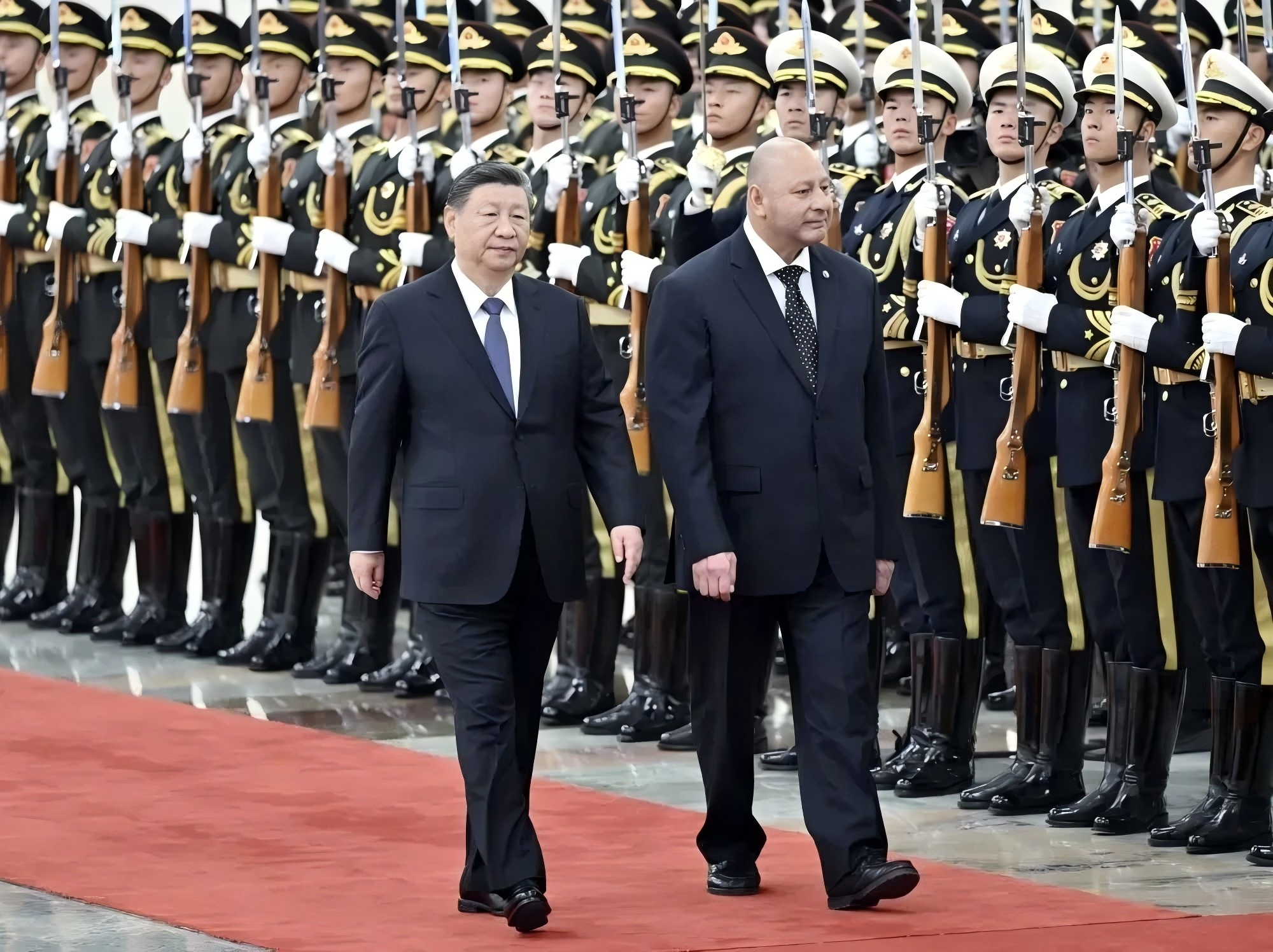 11月25日上午,国家主席习近平在北京人民大会堂会见来华进行国事访问的汤加国王图普六世。这是会见前,习近平在人民大会堂北大厅为图普六世举行欢迎仪式。新华社记者 丁海涛 摄