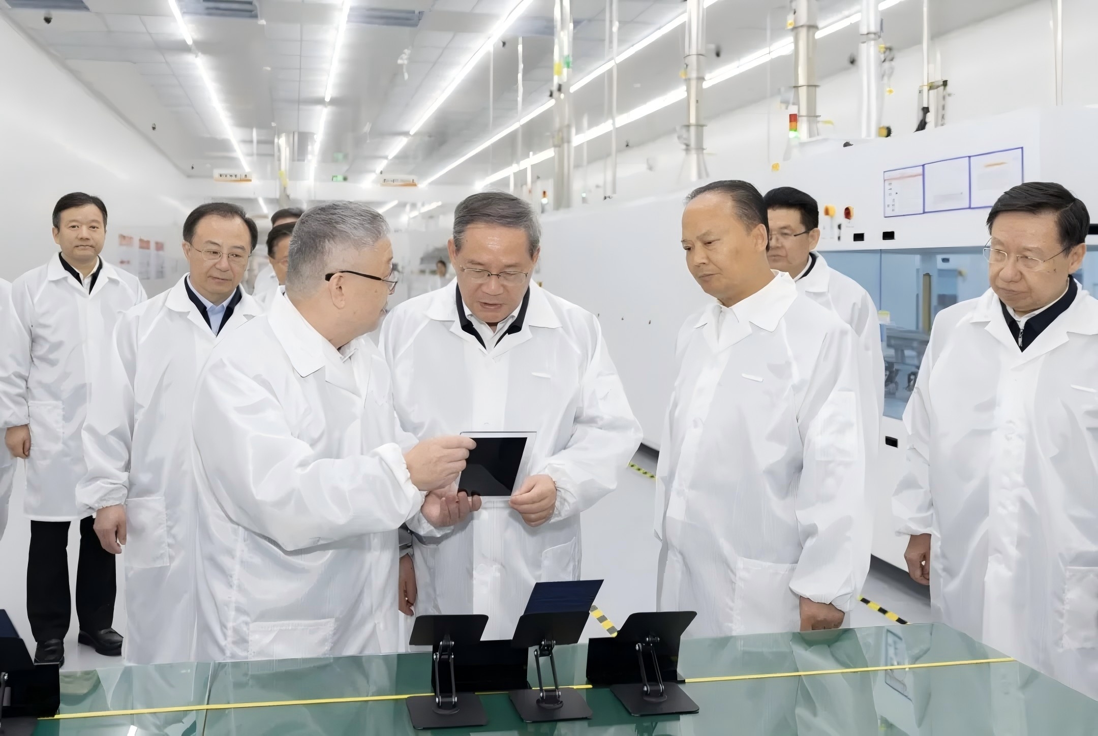 3月30日至4月1日,中共中央政治局常委、国务院总理李强在四川调研。这是3月30日,李强在通威全球创新研发中心听取光伏技术攻关介绍,进入车间察看电池组件研制情况。新华社记者 黄敬文 摄
