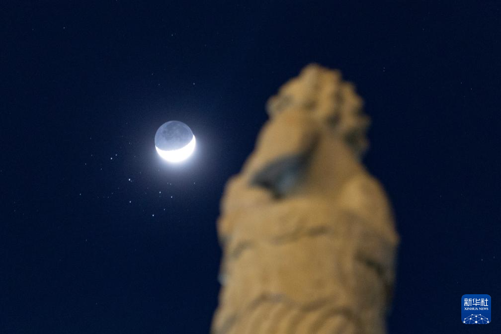 3月23日在黑龙江省富锦市拍摄的“昴星团伴月”景观。