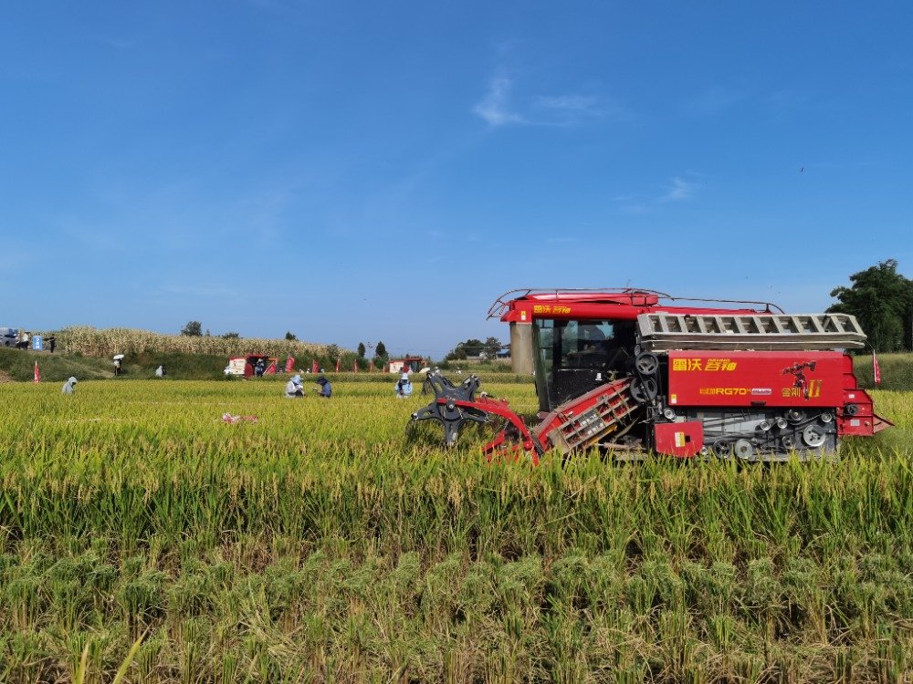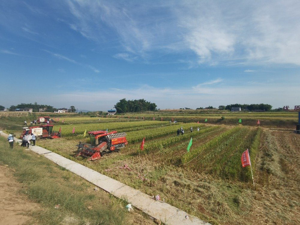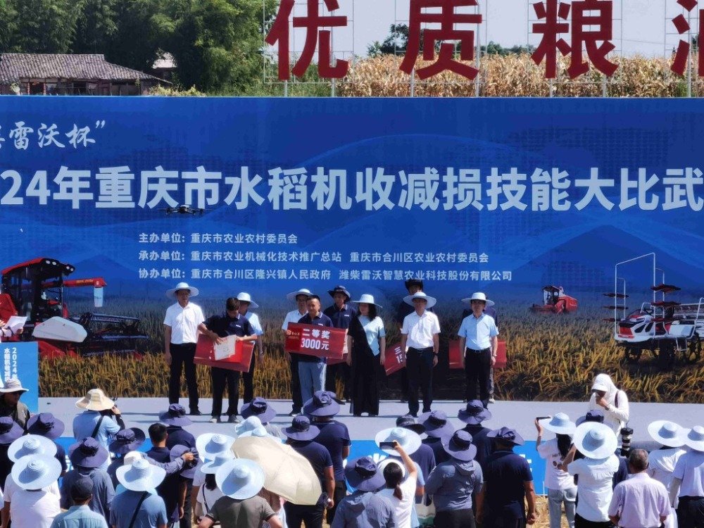 ▲2024年8月26日,合川区隆兴镇玉河村,我市水稻机收减损技能“大比武”现场。记者 赵伟平 摄