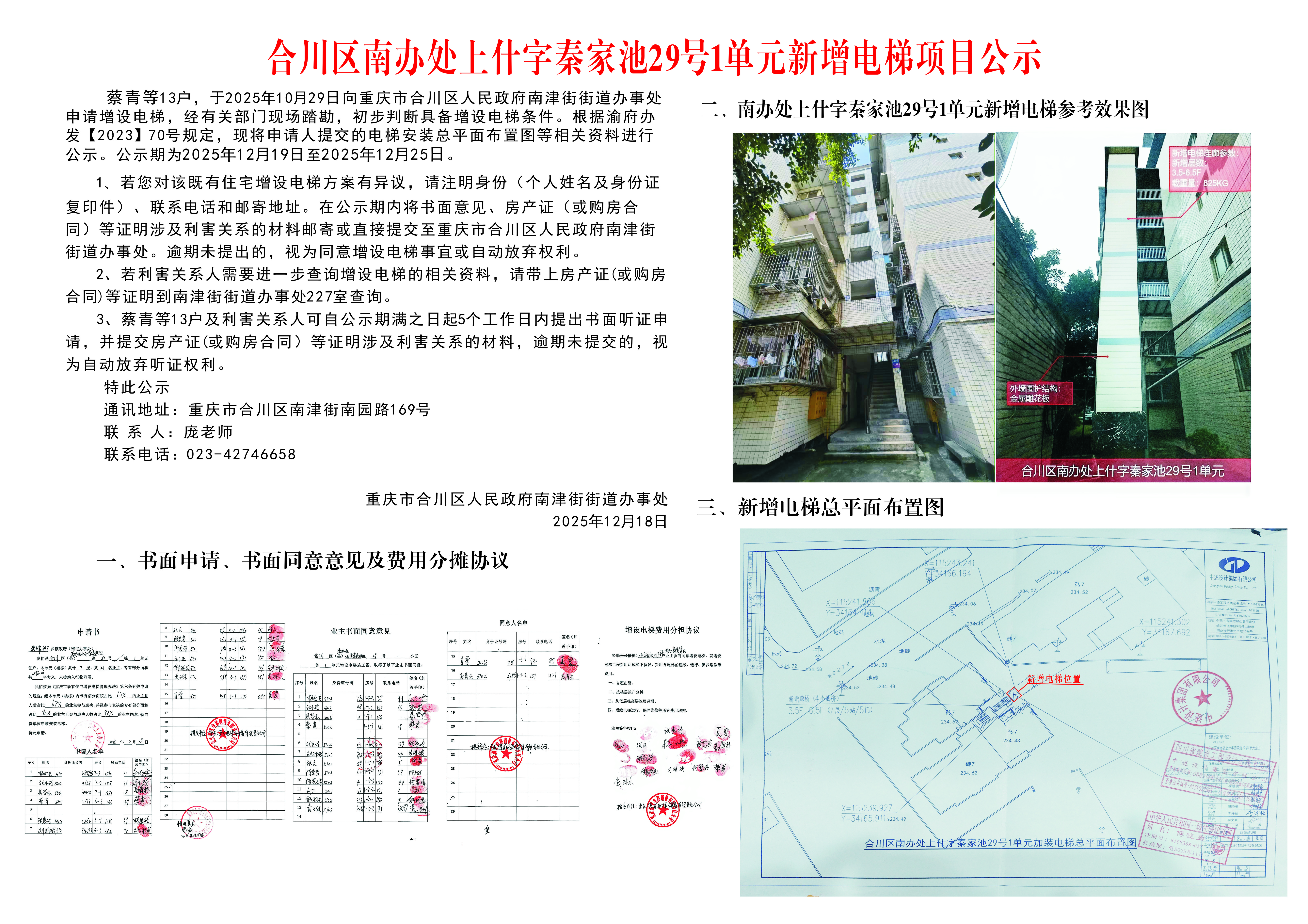 合川区南办处上什字秦家池29号1单元新增电梯项目公示图