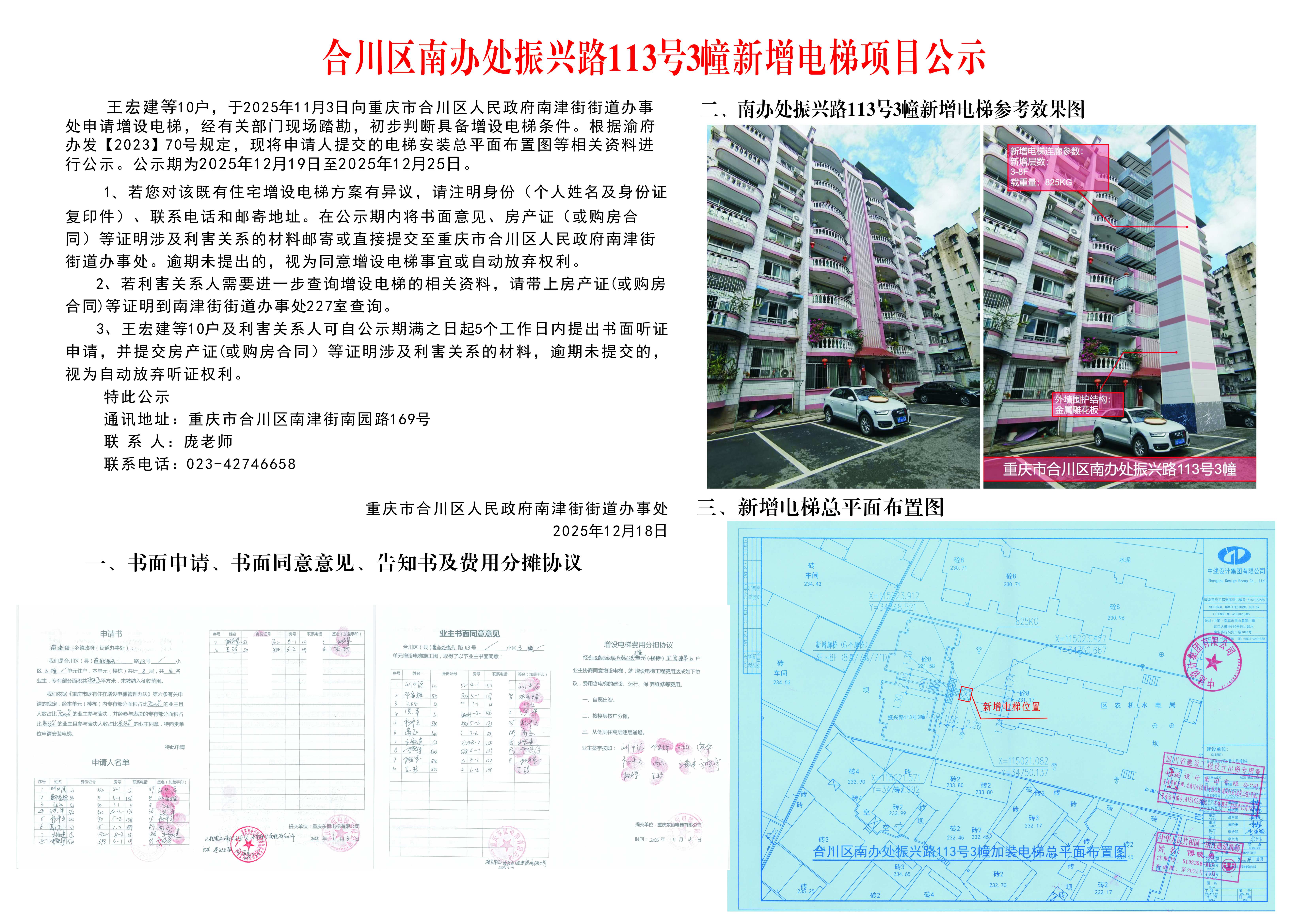 合川区南办处振兴路113号3幢新增电梯项目公示
