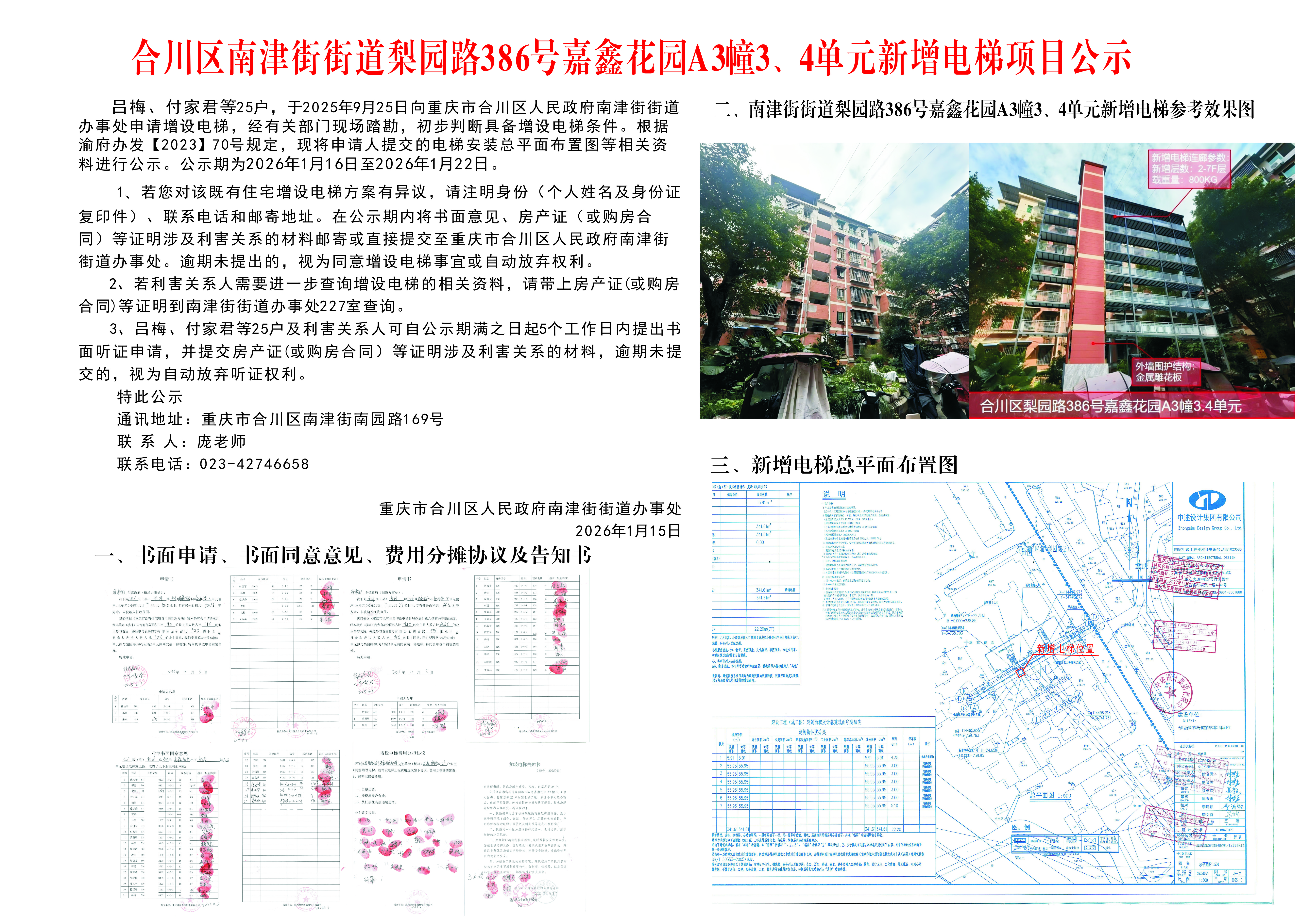 合川区南津街街道梨园路386号嘉鑫花园A3幢3、4单元新增电梯项目公示