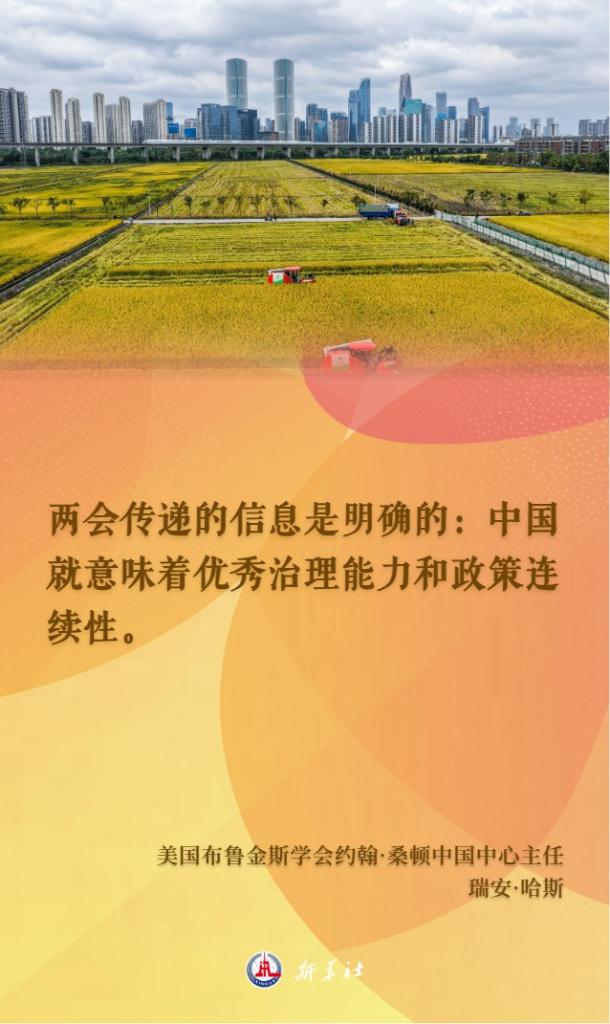 在海外观察者眼中,中国擅长从长远视角制定和完成发展规划,“一张蓝图绘到底”。密切关注两会日程的美国布鲁金斯学会约翰·桑顿中国中心主任瑞安·哈斯说,两会传递的信息是明确的:中国就意味着优秀治理能力和政策连续性。