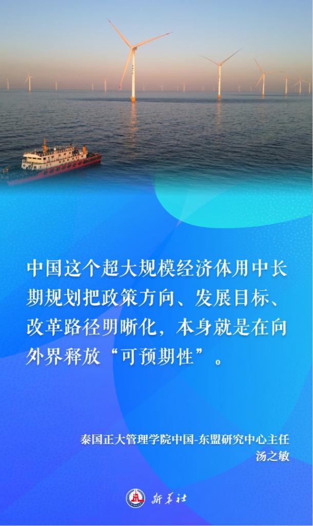 泰国正大管理学院中国-东盟研究中心主任汤之敏说,中国这个超大规模经济体用中长期规划把“政策方向、发展目标、改革路径”明晰化,本身就是在向外界释放“可预期性”。