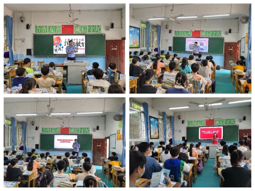 燕窝镇应急办、文化服务中心志愿者和派出所民警走进燕窝中学,组织开展平安建设系列宣传“进校园”活动,为该校初二年级师生带来生动的“防范电信诈骗”“青少年毒品预防教育”“扫黄打非·绿色书签”法治教育课,同时还开展了暑期道路交通安全及防溺水安全教育,为建设平安校园筑起“防护墙”。