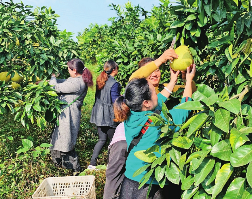 晴日摘柚欢乐多 记者王倩摄